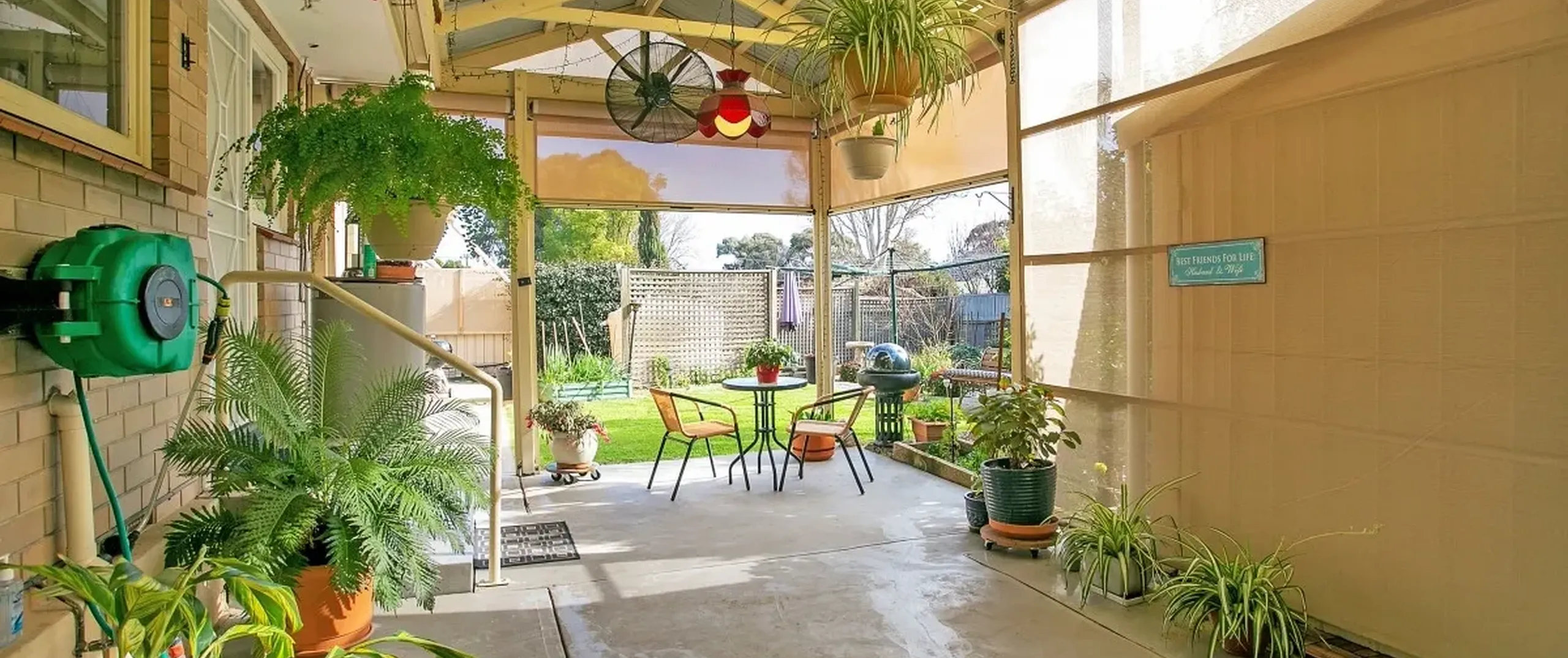 - Verandah with adjustable cafe blinds, ideal for outdoor entertaining