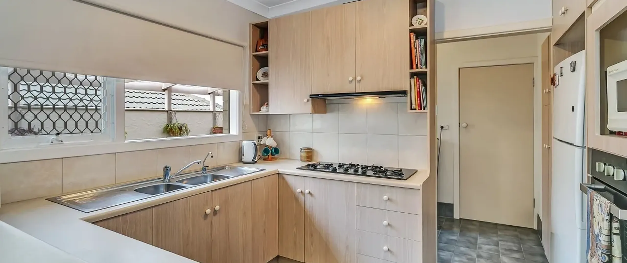 - Modern kitchen with gas cooktop, breakfast bar and ample bench and cupboard space
