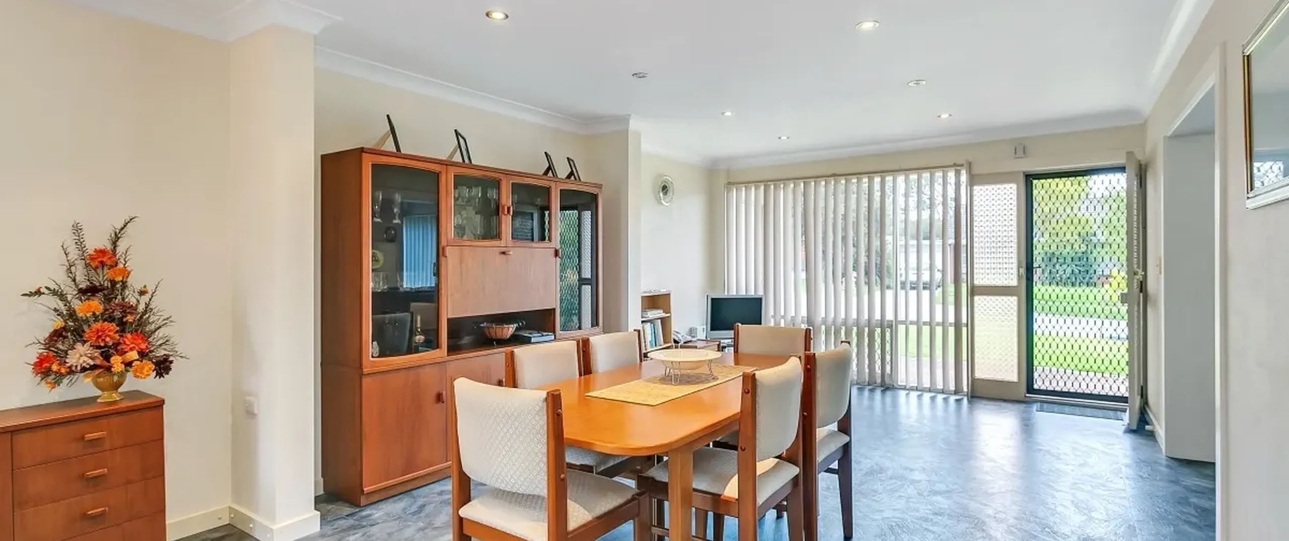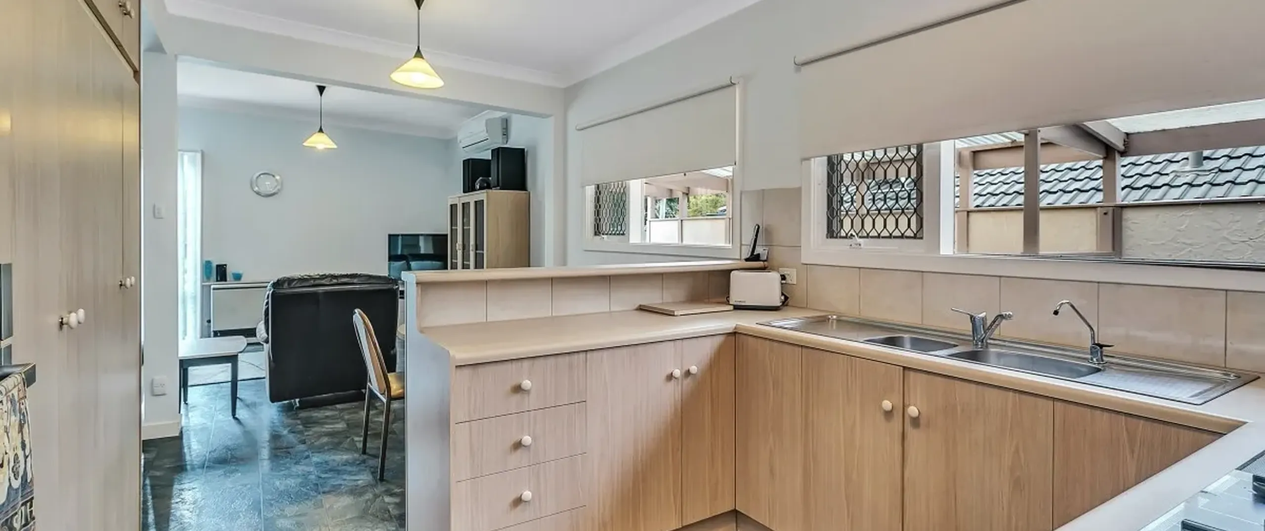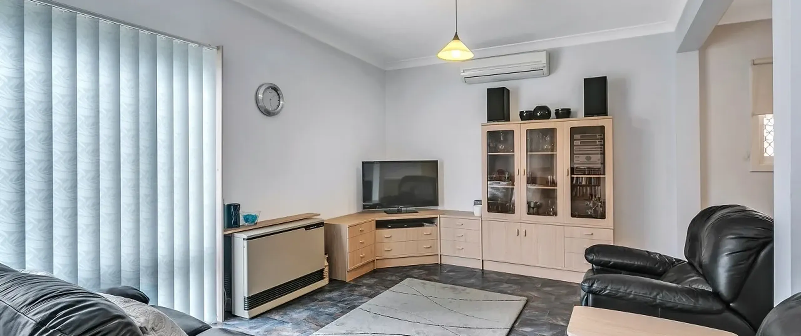 - Spacious, light filled open plan lounge/dining area with split system air conditioner and Rinnai gas heater