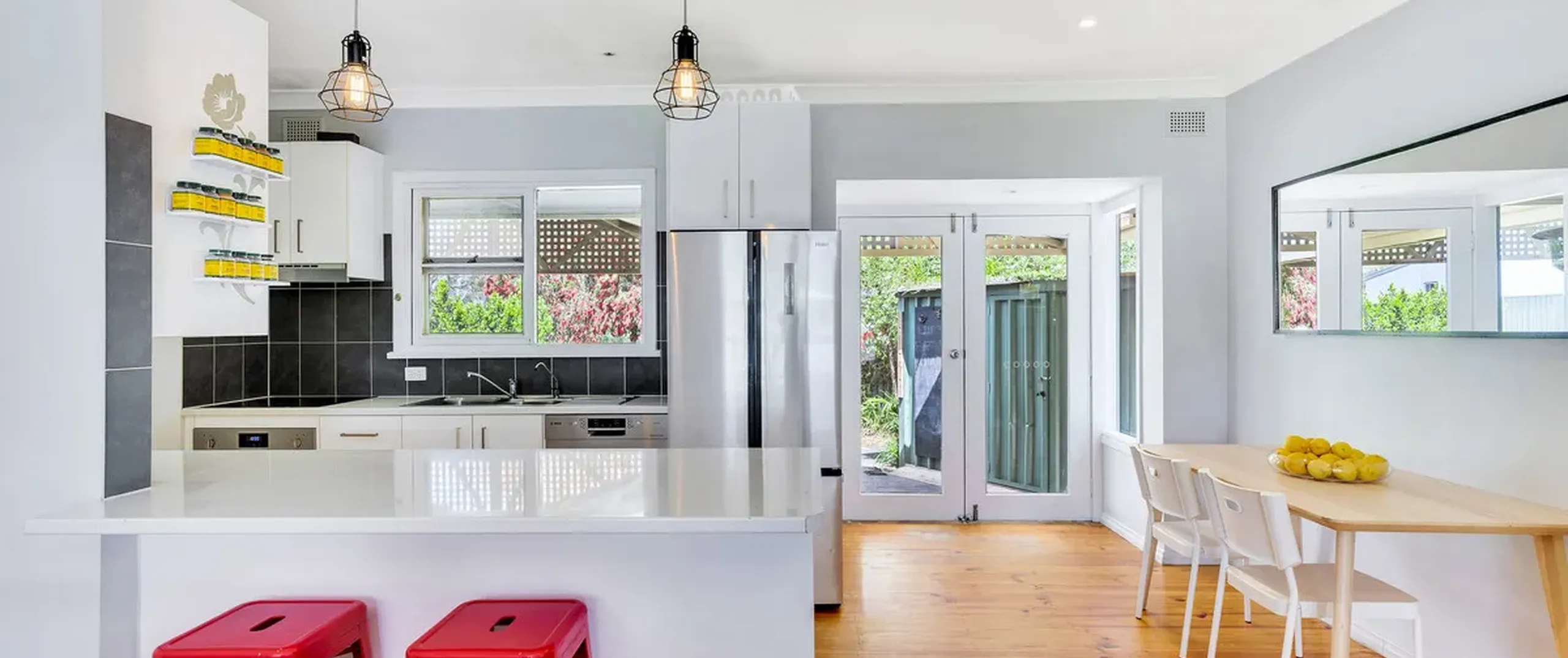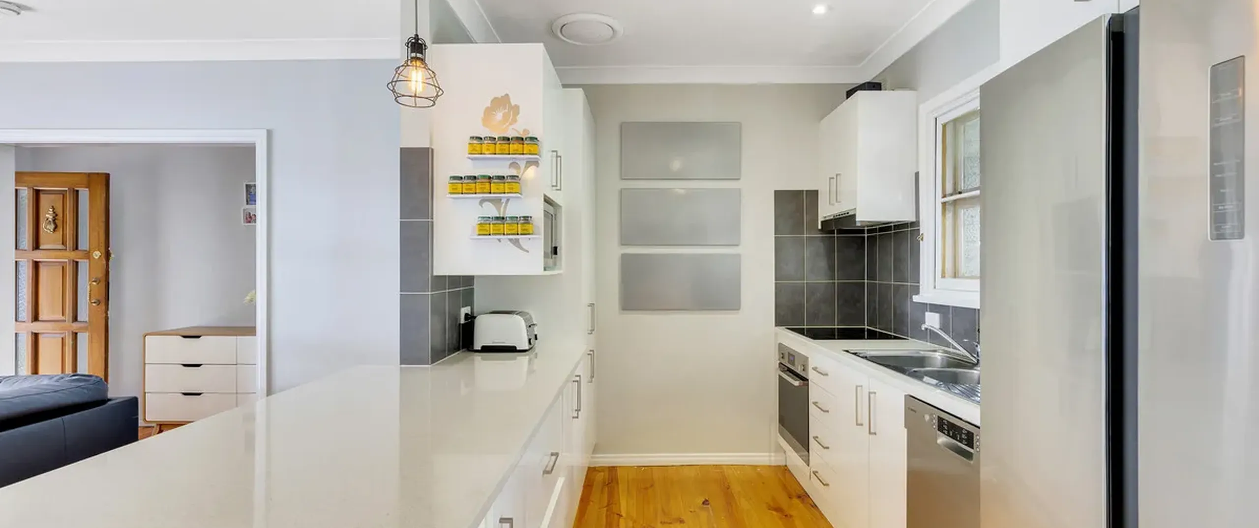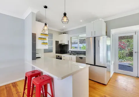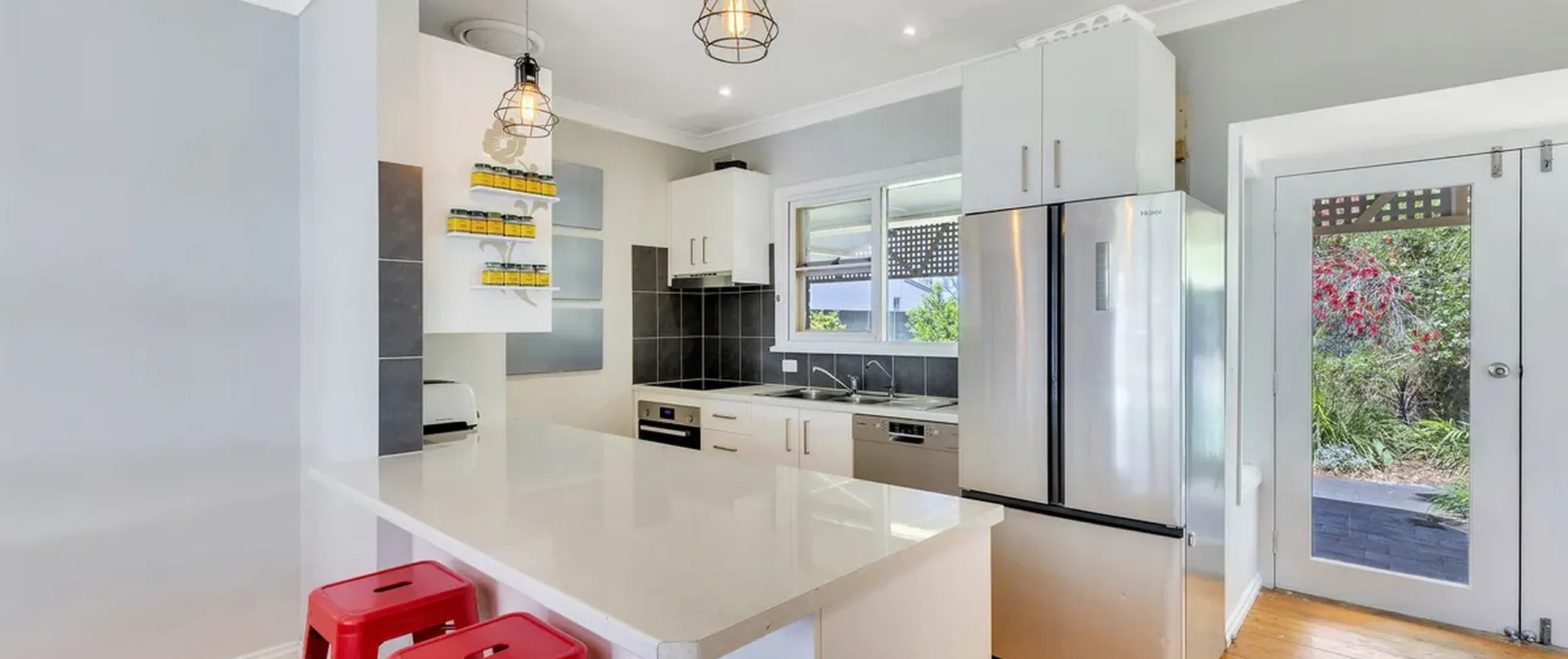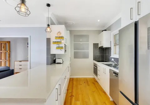 - Modern kitchen with breakfast bar, ample bench space, stainless steel appliances and dishwasher