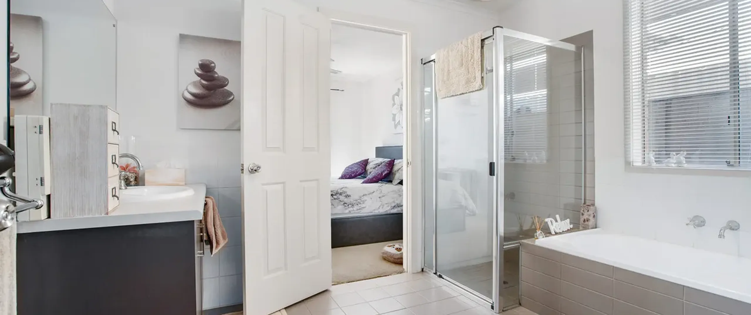 - Neutral and spacious 2-way bathroom with bath tub + separate shower
