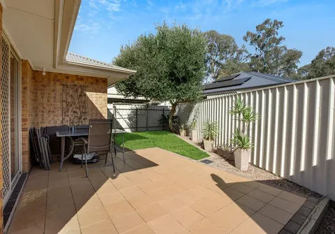 The open-plan kitchen, meals area and living room is air-conditioned and steps out to a paved patio nestled within the private and fenced backyard. Hosting guests will be a joy in this outdoor area while inside, the kitchen is ready for the home cook with quality appliances and contemporary finishes.