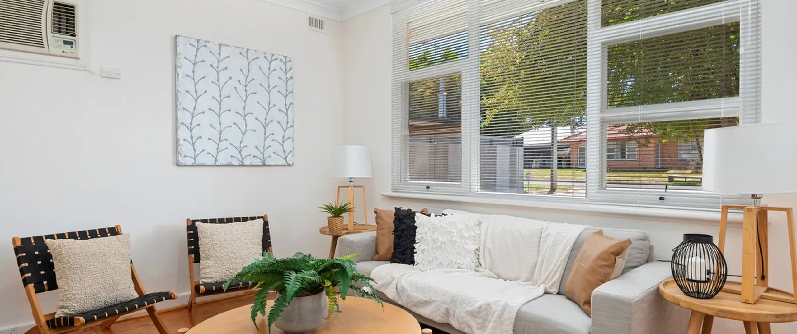 - Lounge room complete with air-conditioning, hardwood floorboards and large windows allowing plenty of natural light and sunshine