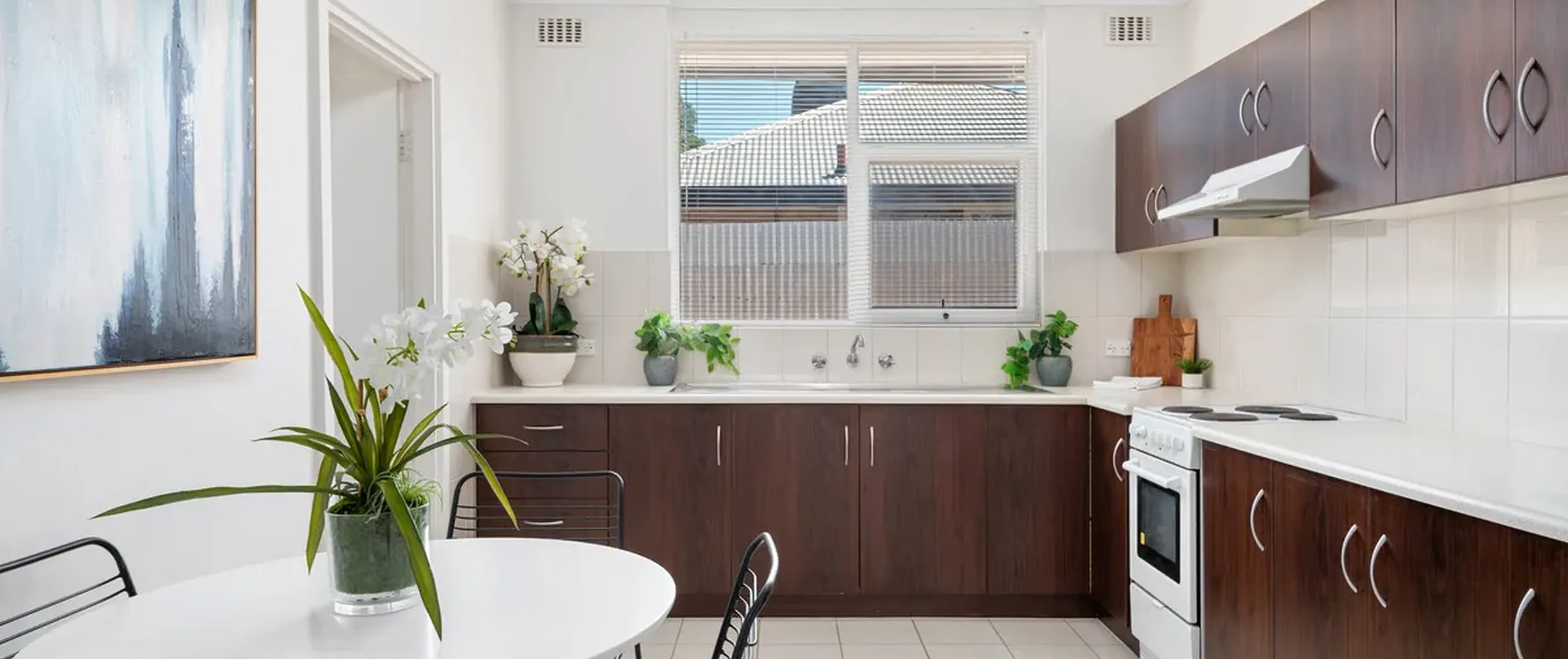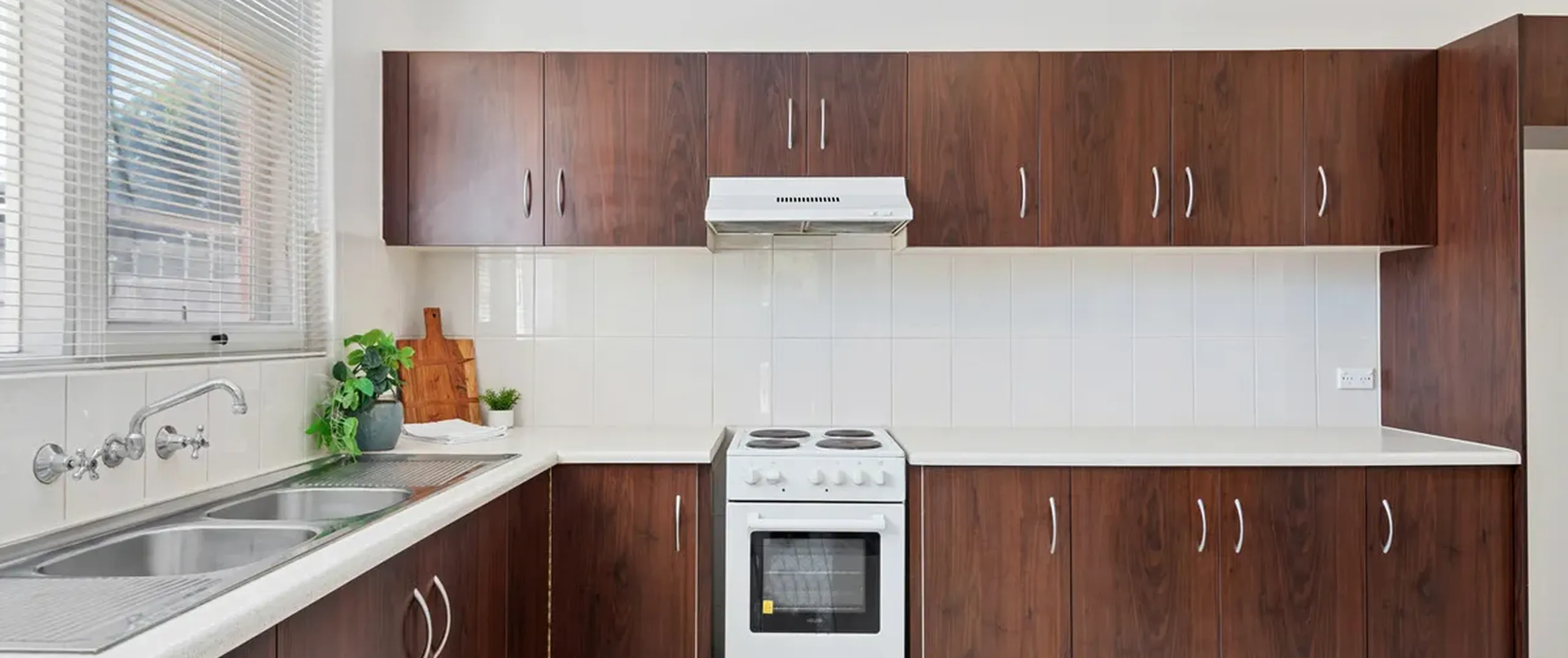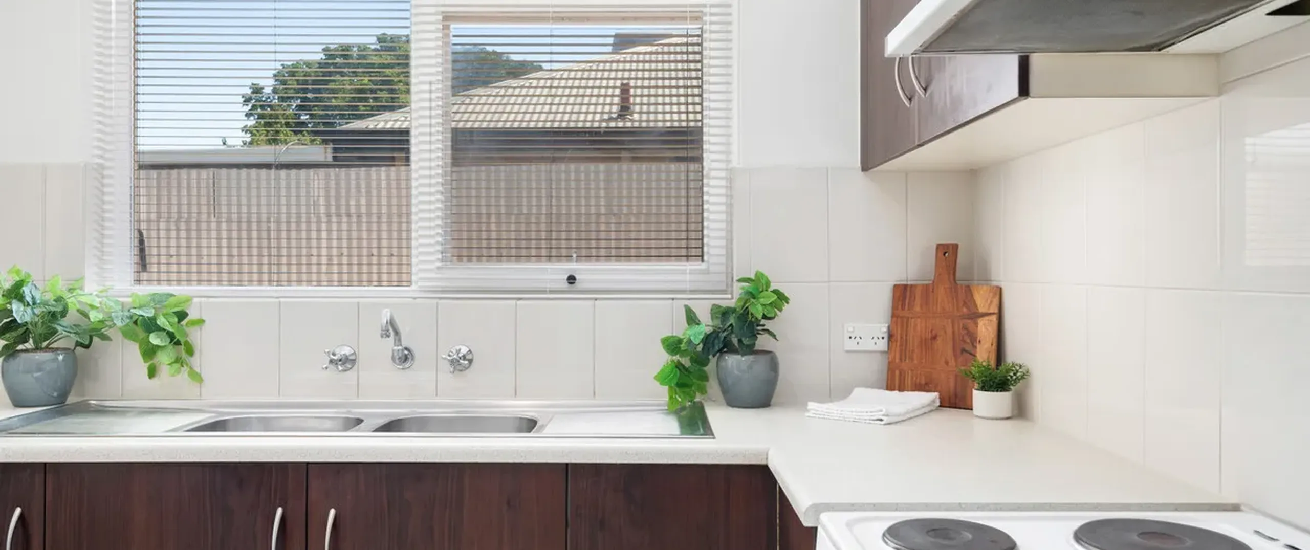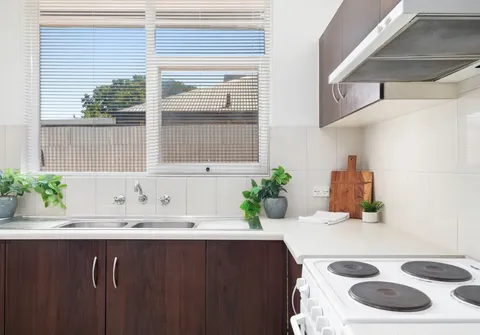 - A very neat kitchen and meals area with plenty of bench/cupboard space and free-standing cook top/oven