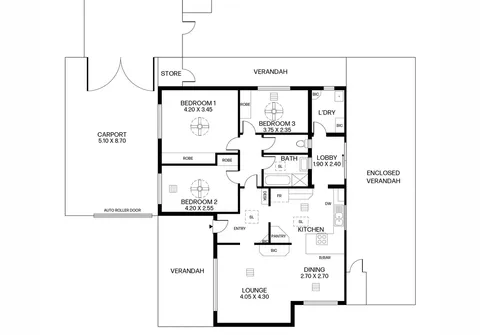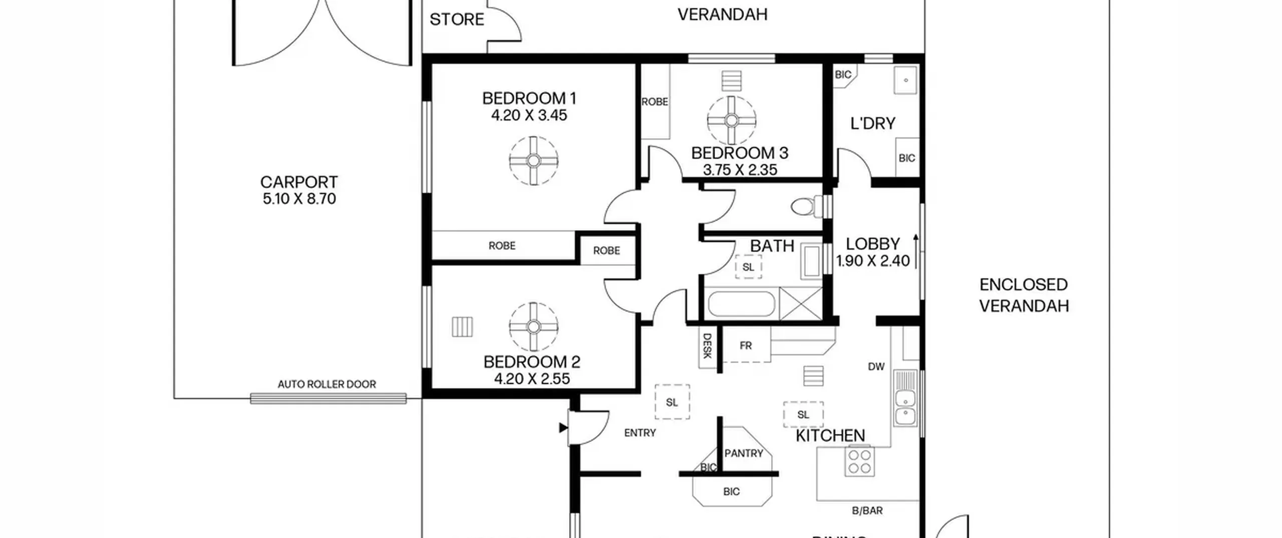 - Secure carport with automatic roller door to accommodate one car and off-street parking for another two cars in the driveway