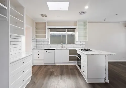 - Stunning new kitchen with plenty of cupboard space, walk-in pantry, 5 burner gas cooktop, dishwasher, impressive island bench and skylight