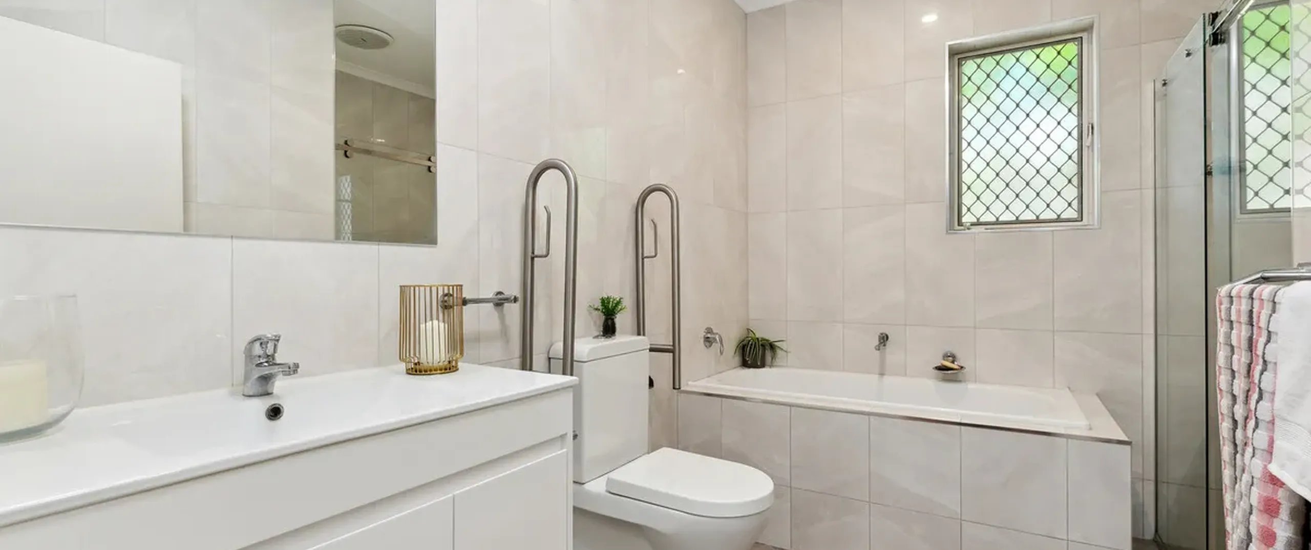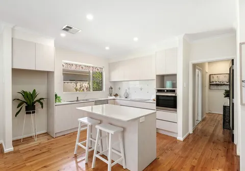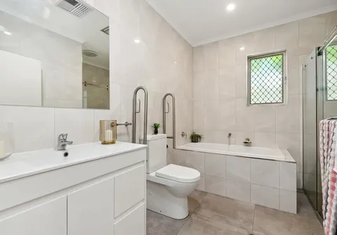 Discover three spacious bedrooms, each equipped with built-in robes. The elegant main bathroom, centrally located, caters to the needs of the household, and an additional second toilet with second shower adds a practical touch.