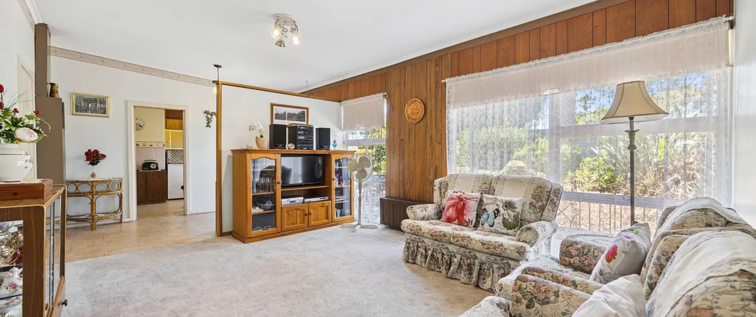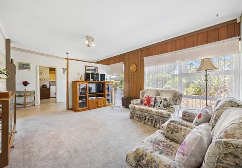 Providing three bedrooms, two living areas and a kitchen accompanied by an adjoining dining space. Outdoors includes a verandah, garden shed and two carports to accommodate up to five vehicles.
