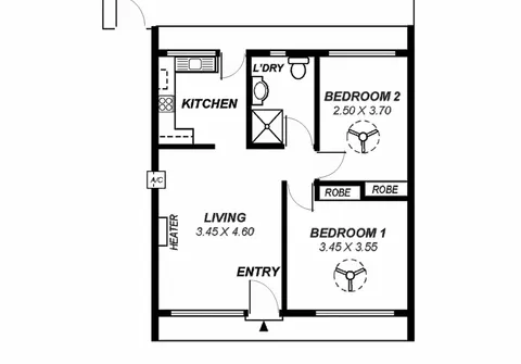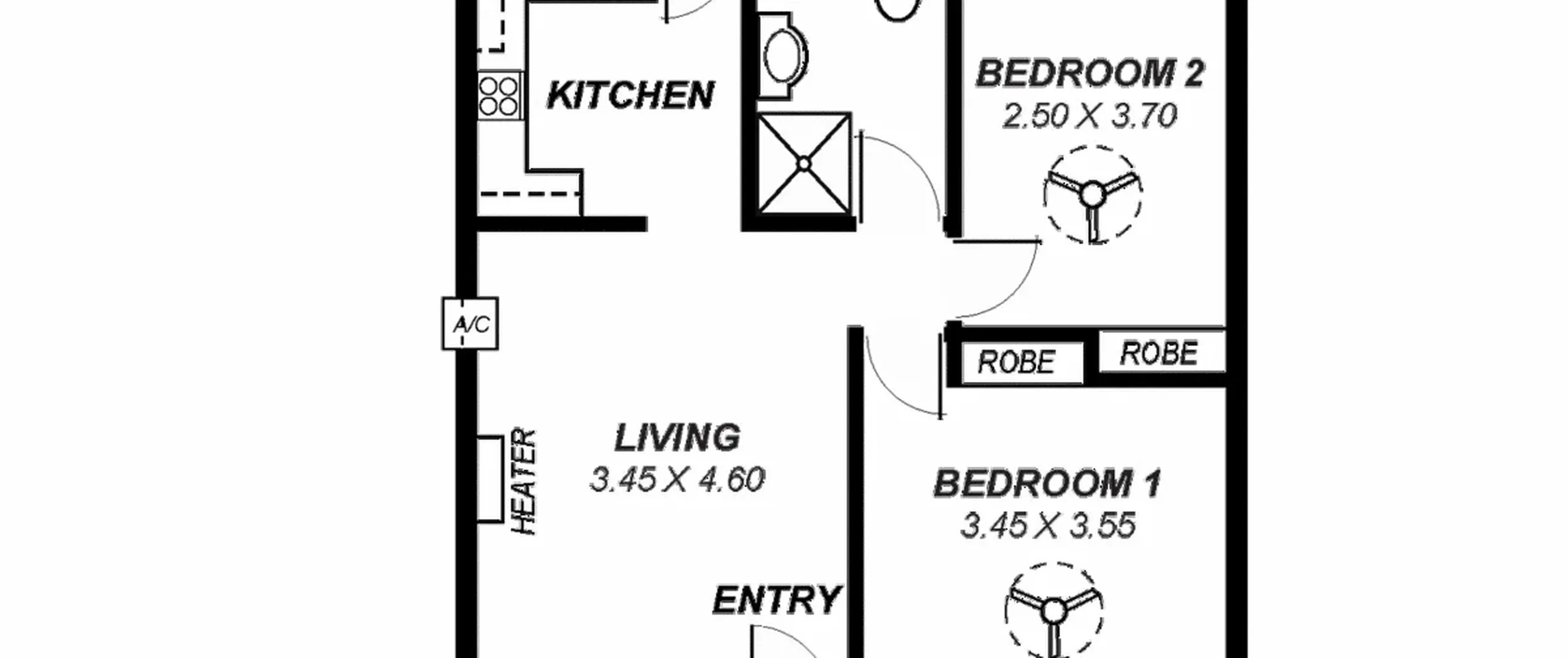 - 2 generous bedrooms, both with built-in robes and ceiling fans