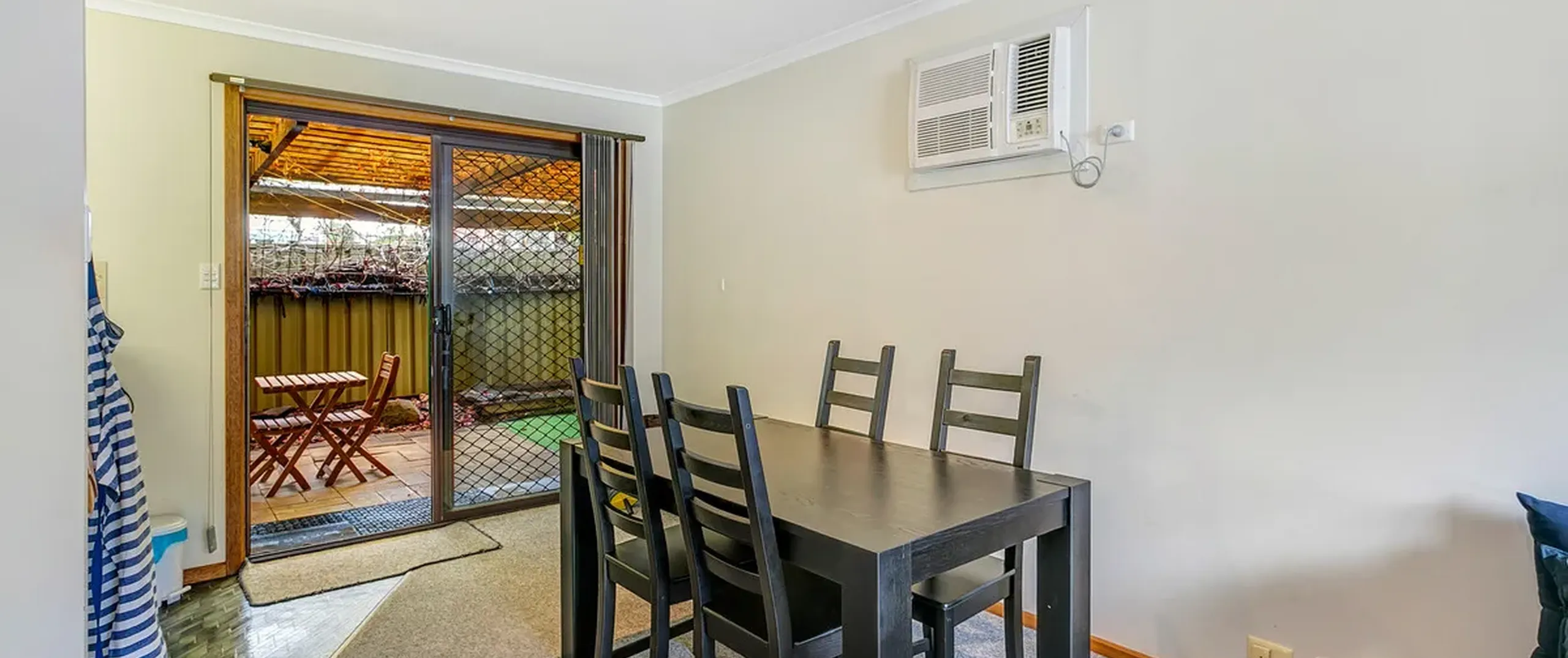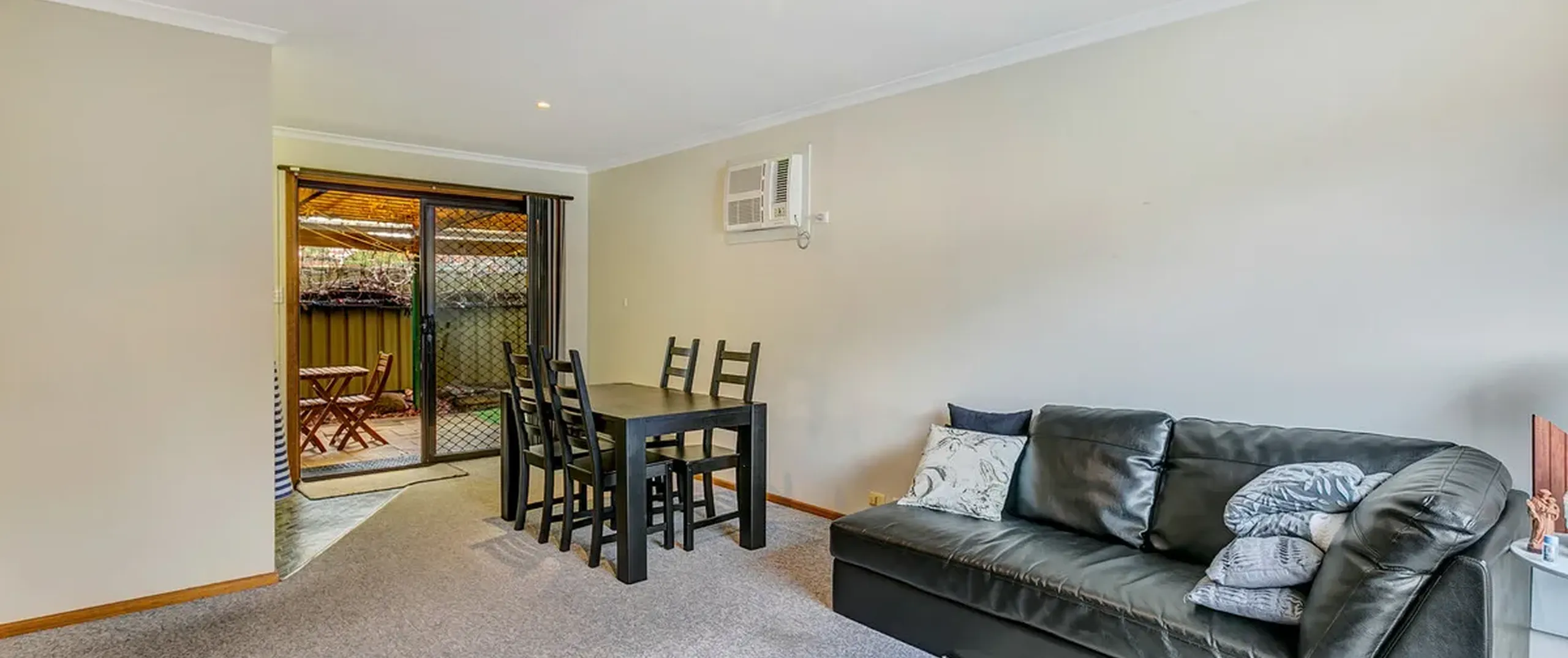 - Spacious open plan lounge and meals area with wall unit air conditioner
