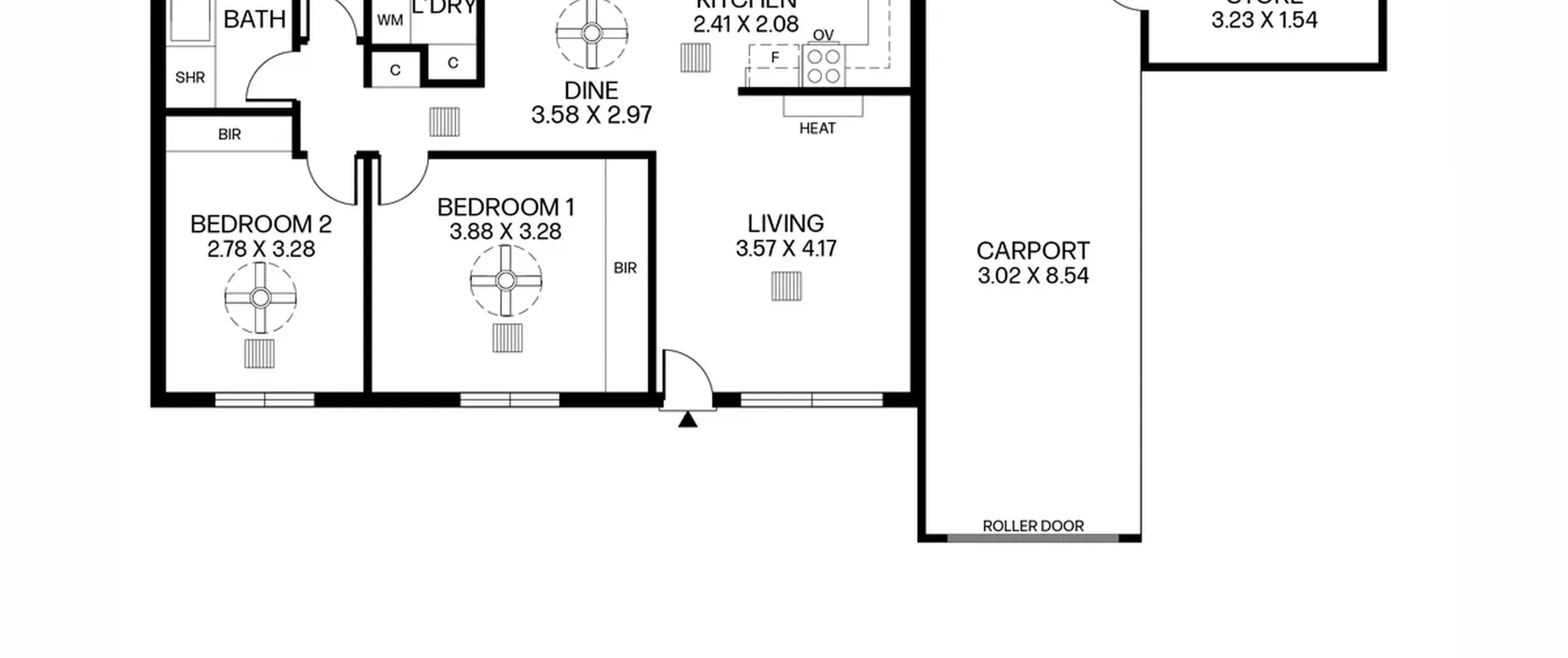 - Two good sized bedrooms, both with built-in robes and ceiling fans