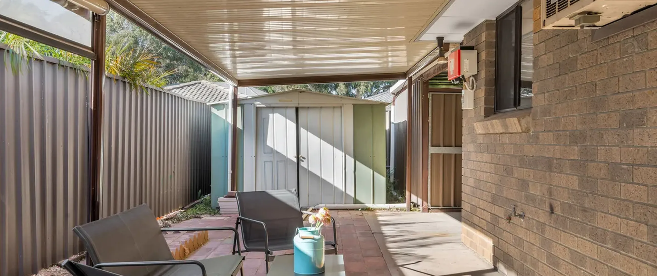- Fully fenced, low maintenance courtyard with garden shed and storage shed