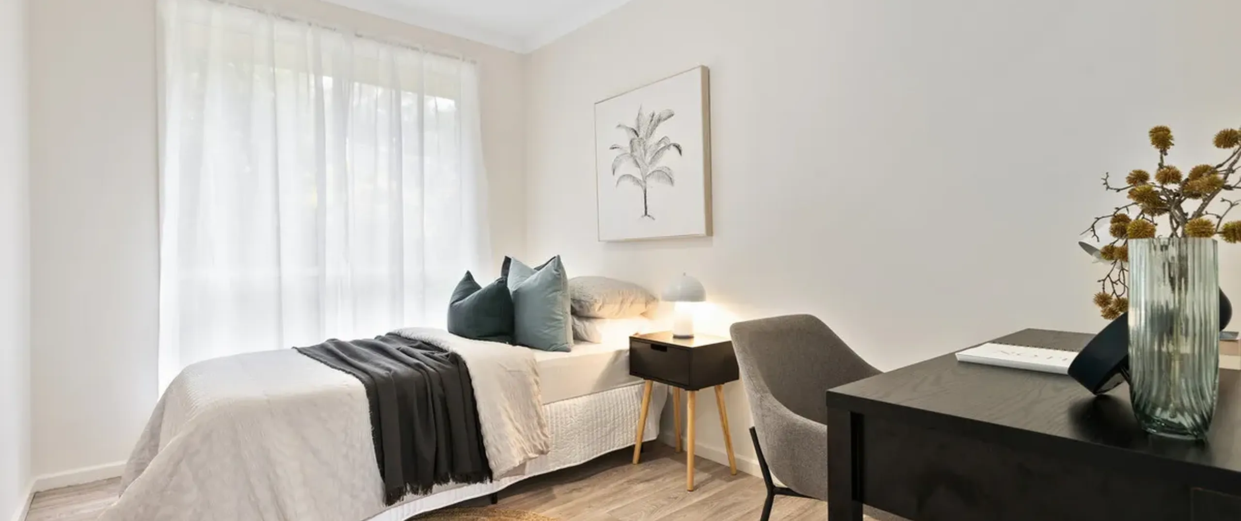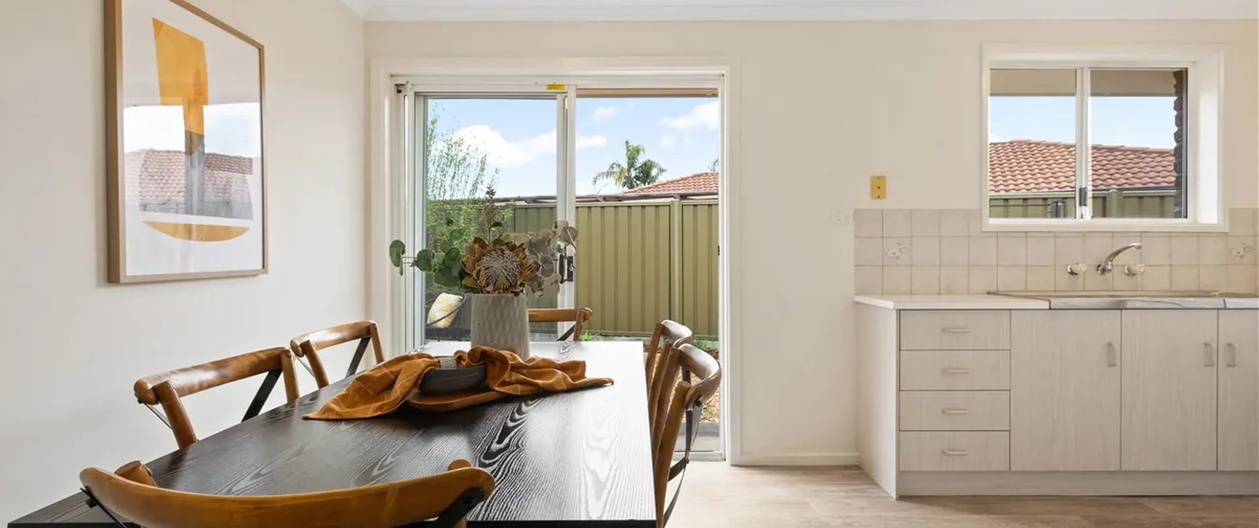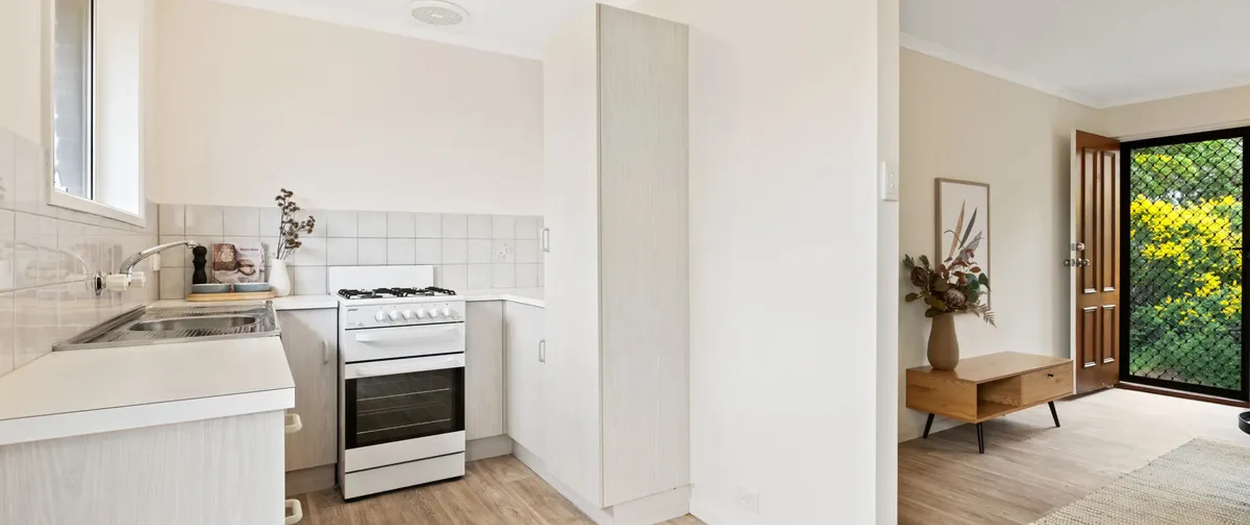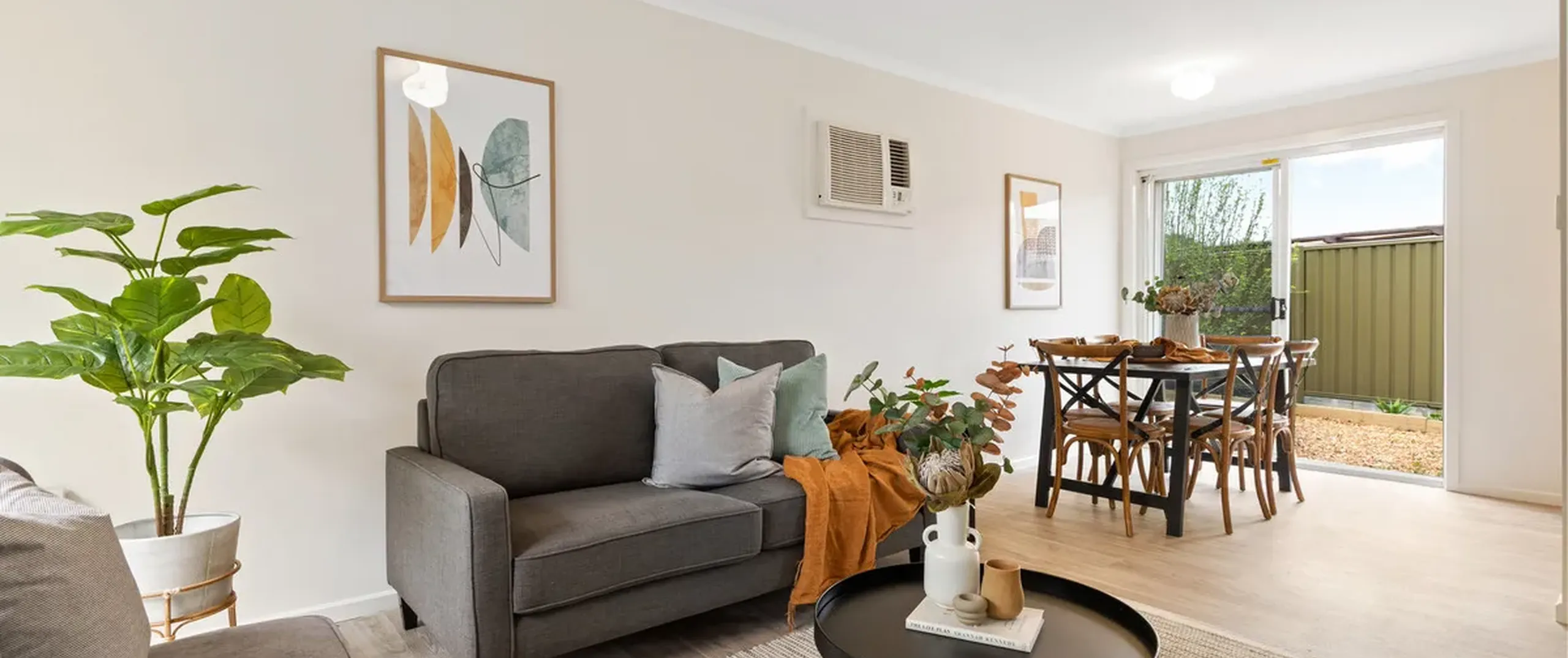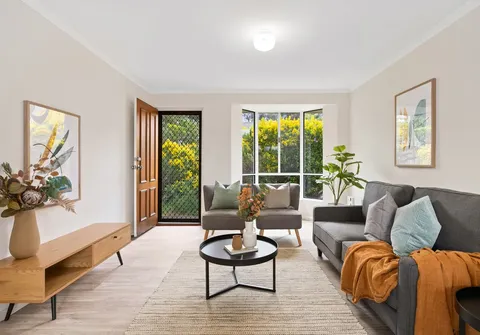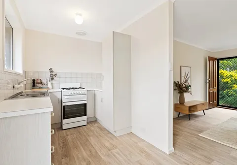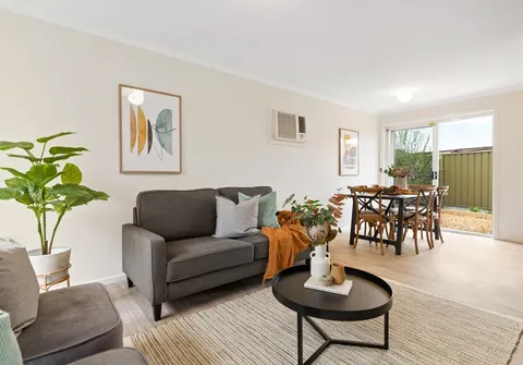With a simple and bright open plan layout with two spacious bedrooms and convenient bathroom with separate toilet. The living space is open plan with easy care flooring underfoot and reverse cycle air-conditioning for complete comfort and in the kitchen, the budding chef is treated to generous storage space and generous, adjoining dining area. The laundry and an attached secure carport complete the internal layout.