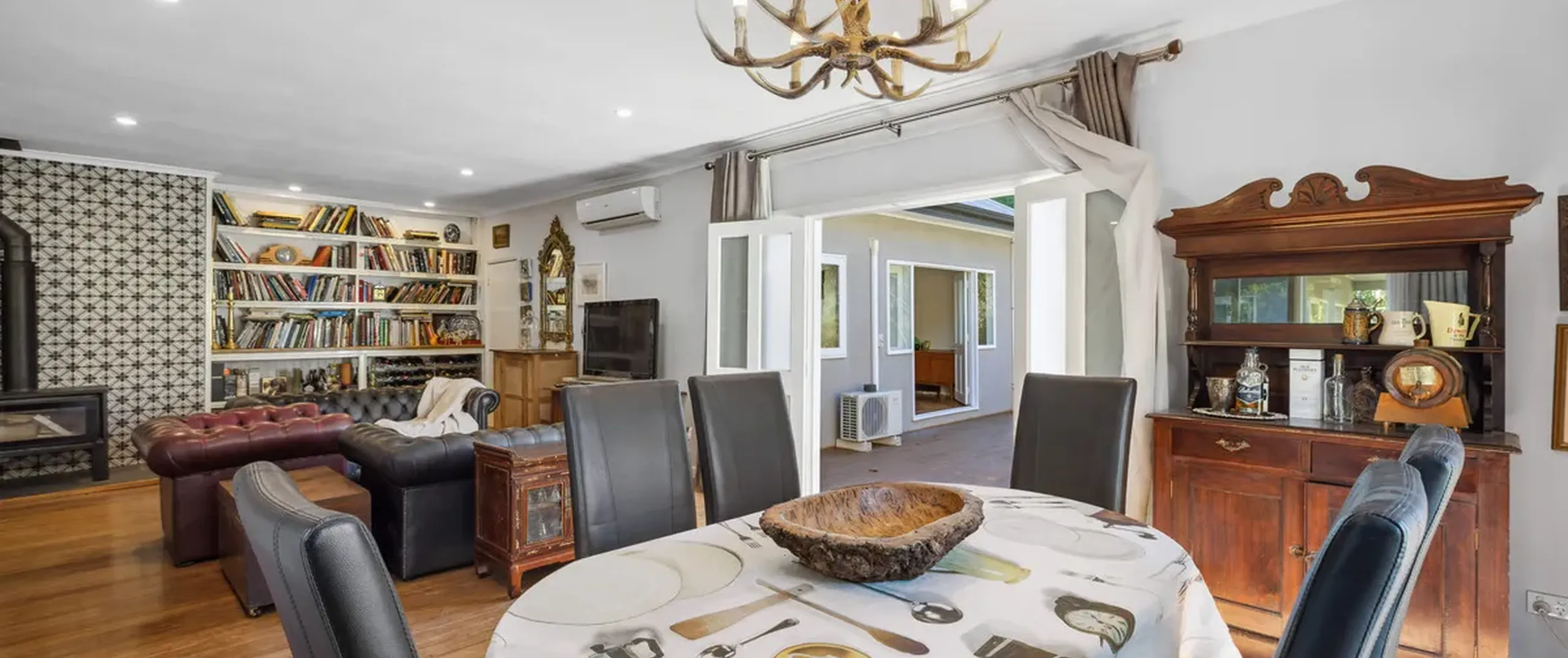 - Easy flowing and open plan living and dining space accommodating year-round comfort with split system air conditioning and charming wood fireplace