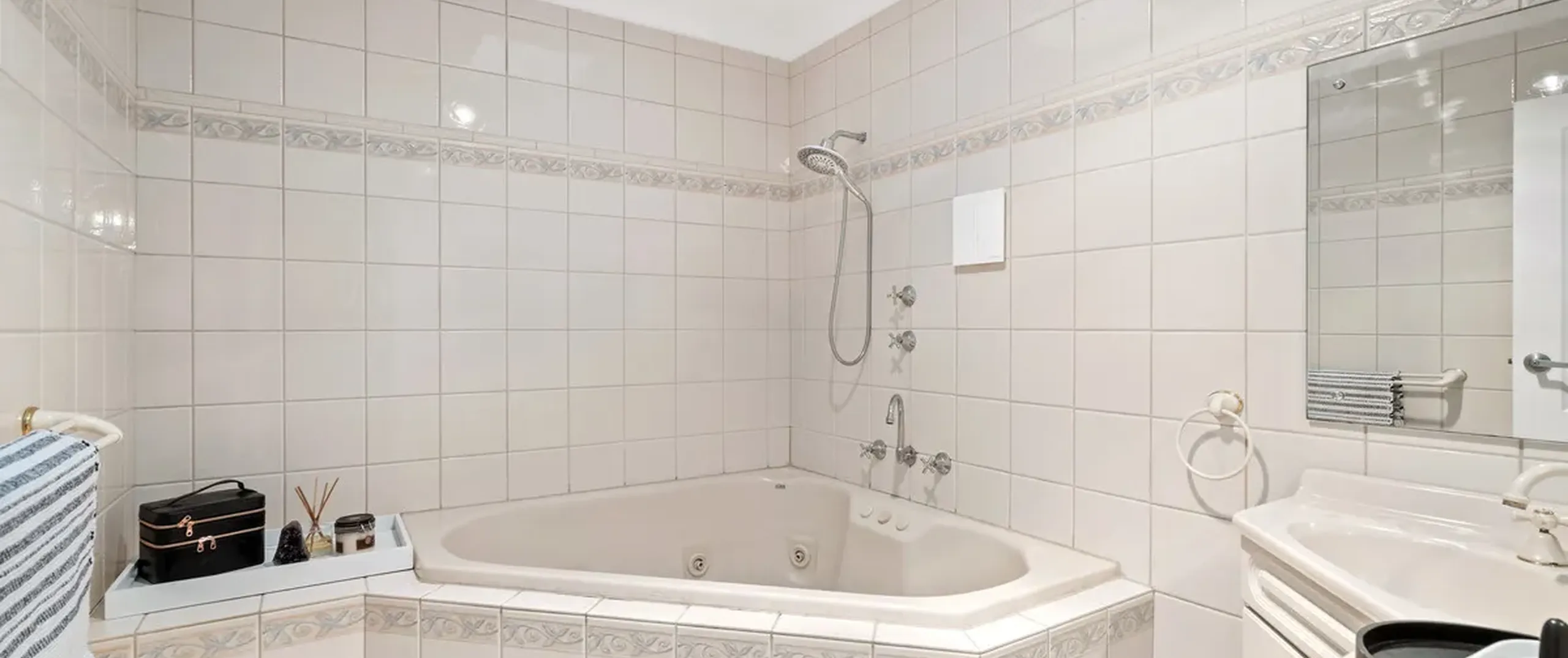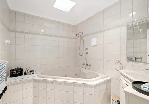- Central main bathroom with floor to ceiling tiles, shower over the spa bath and separate toilet