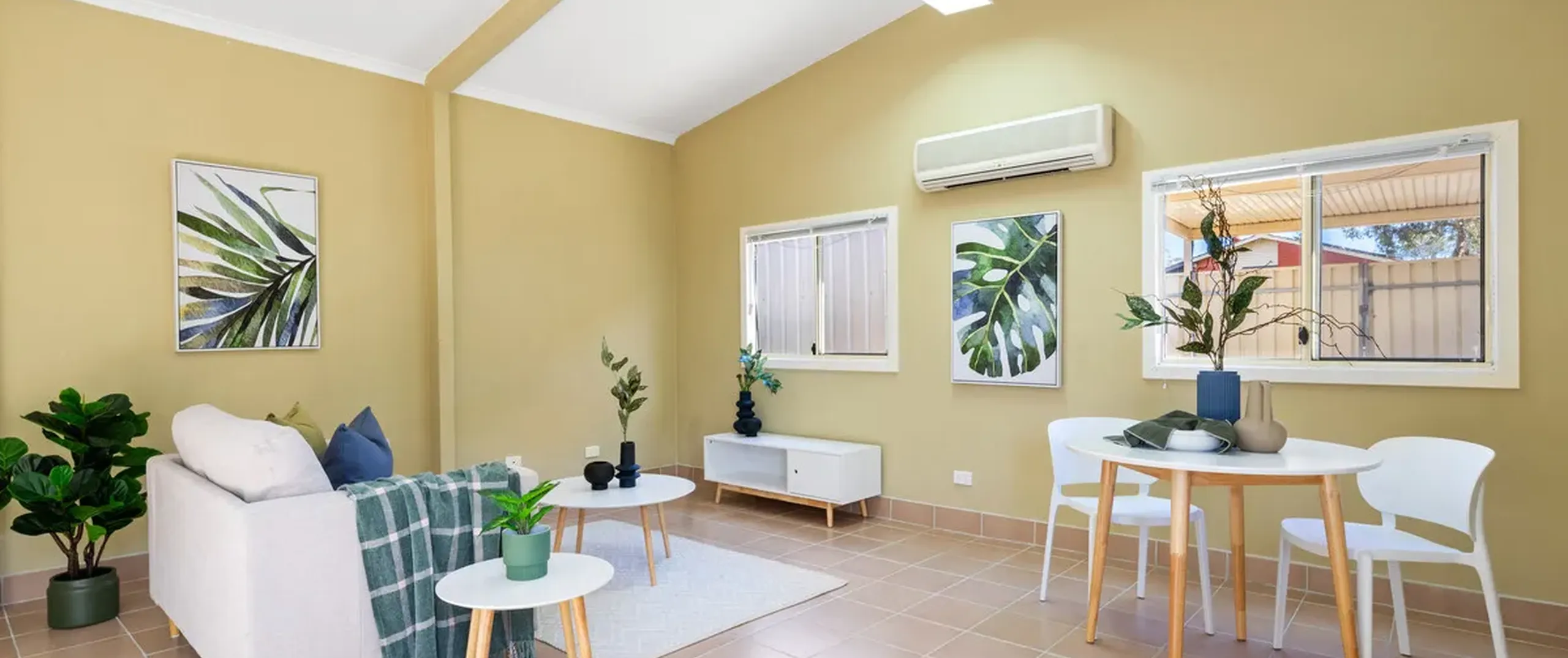 - Impressive separate studio with kitchen and bathroom facilities, includes reverse cycle air conditioner