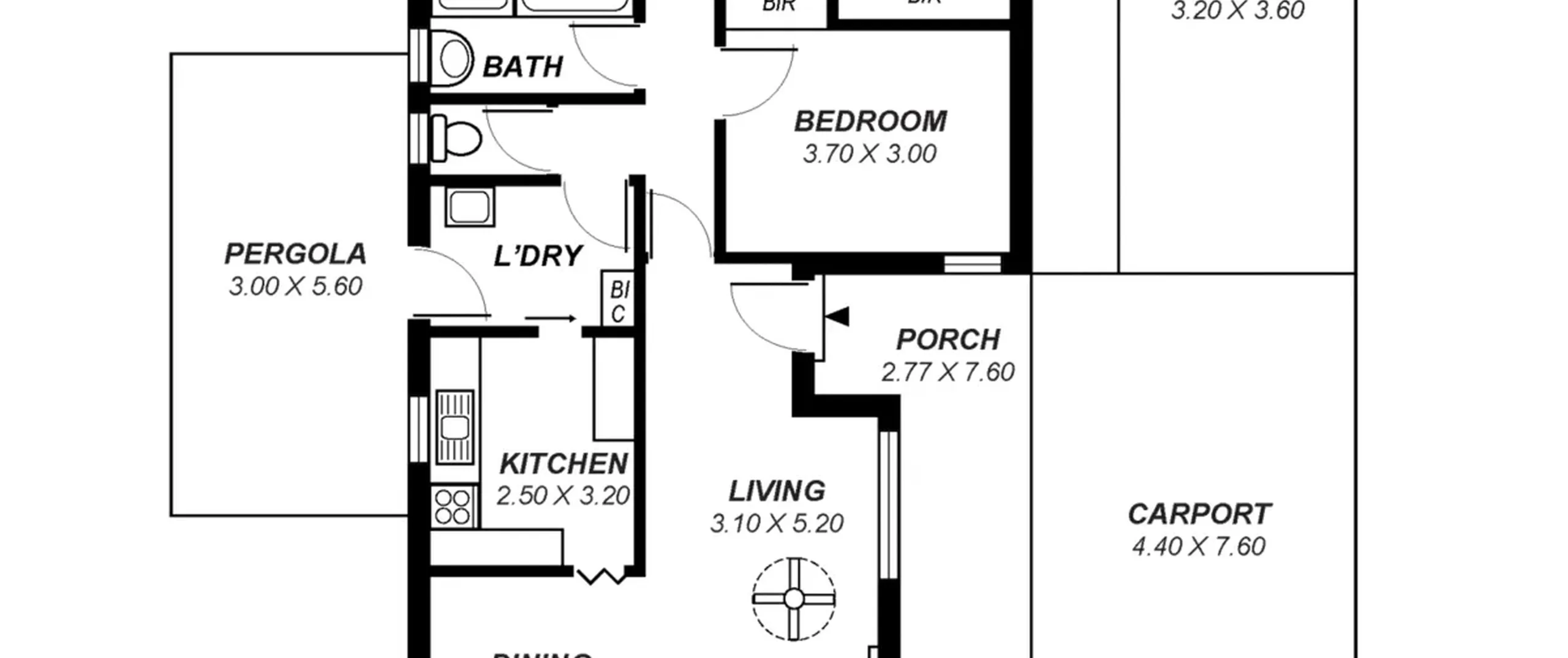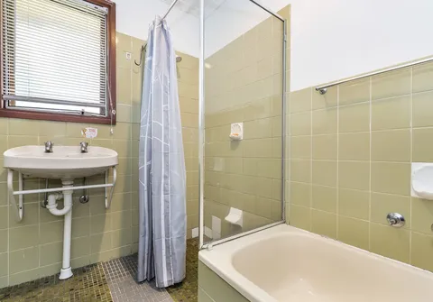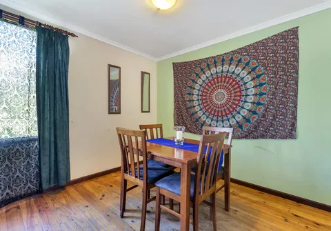 - Light filled living and dining room with heater, air conditioner and ceiling fan