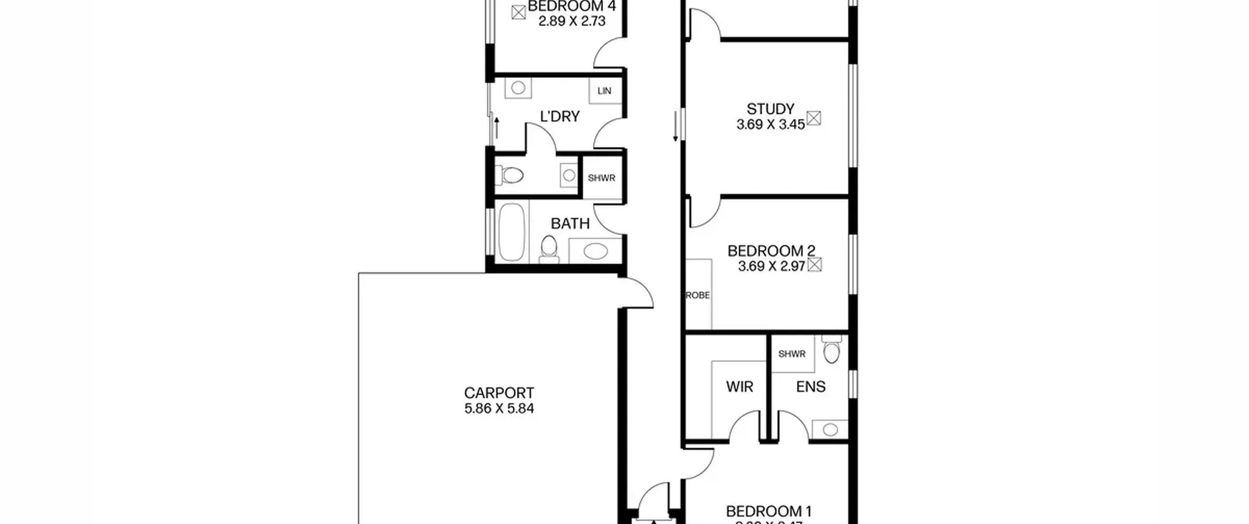 - Spacious study or option to use as formal lounge, providing access to bedrooms two and three