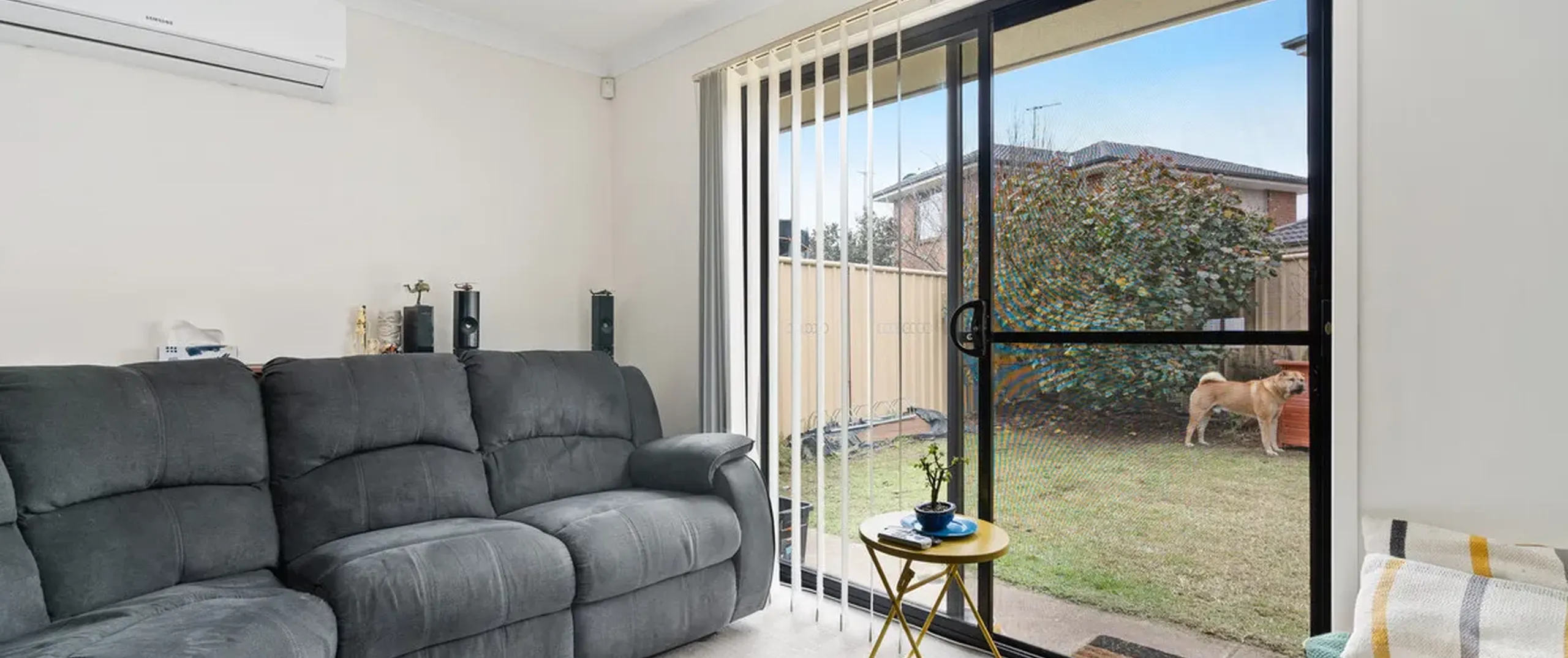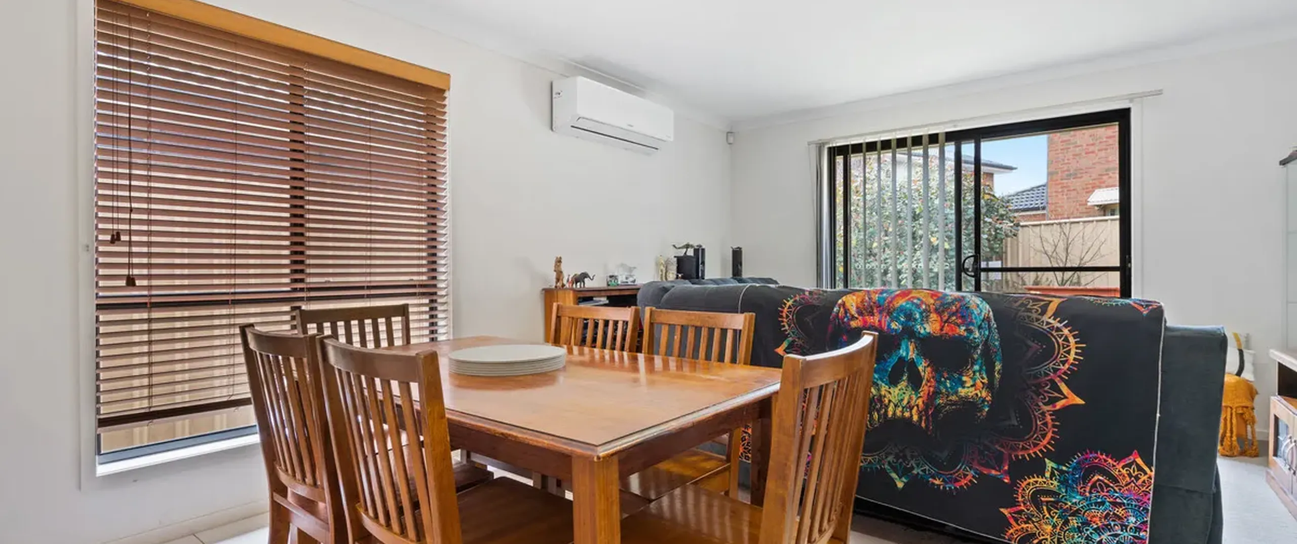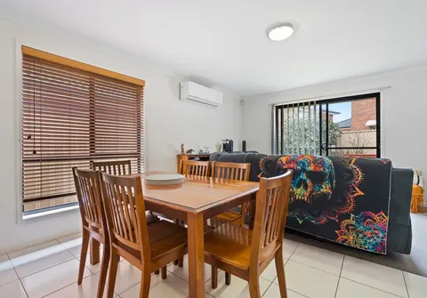 - Open plan living and dining with split system air conditioner