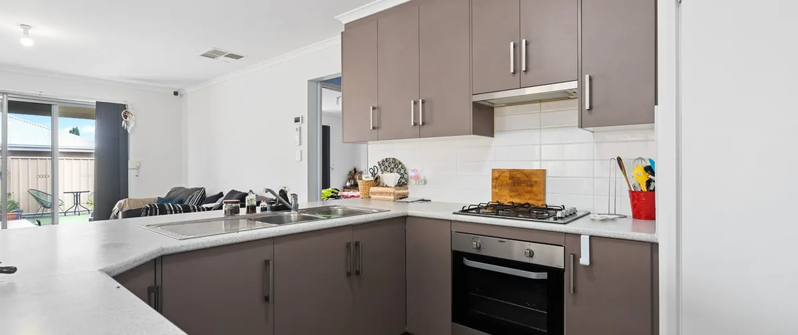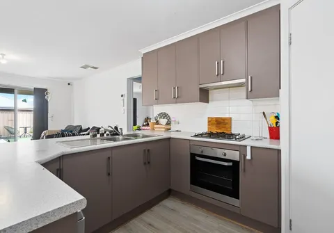 Inside, featuring a stylish and flexible floorplan offering three bedrooms, two bathrooms, dual living space or versatile fourth bedroom and an open plan kitchen and dining area. Come home to a light filled dining and kitchen and living space with sweeping benchtops, ample cupboard storage and walk-in pantry, loads of bench space complete with stainless steel appliances and gas stove top. Outside, a convenient double car garage under the main roof with secure rear and front yards for all to enjoy.