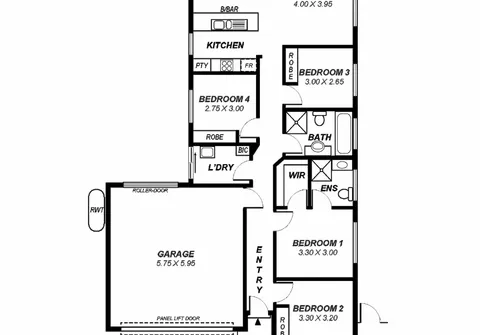 - Double garage with panel lift door, direct internal access and rear access roller door