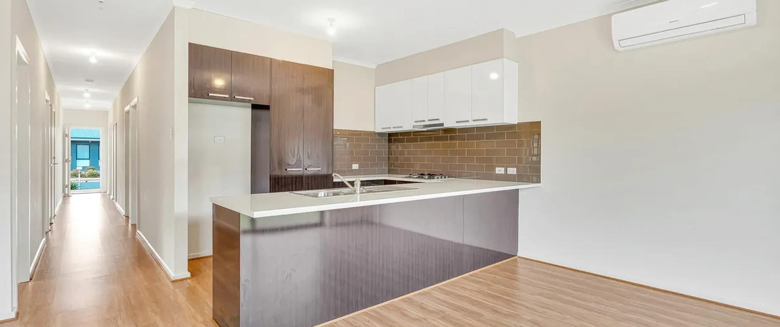 - Light-filled open plan kitchen, dining and family room with split system air-conditioner and low maintenance floating floorboards