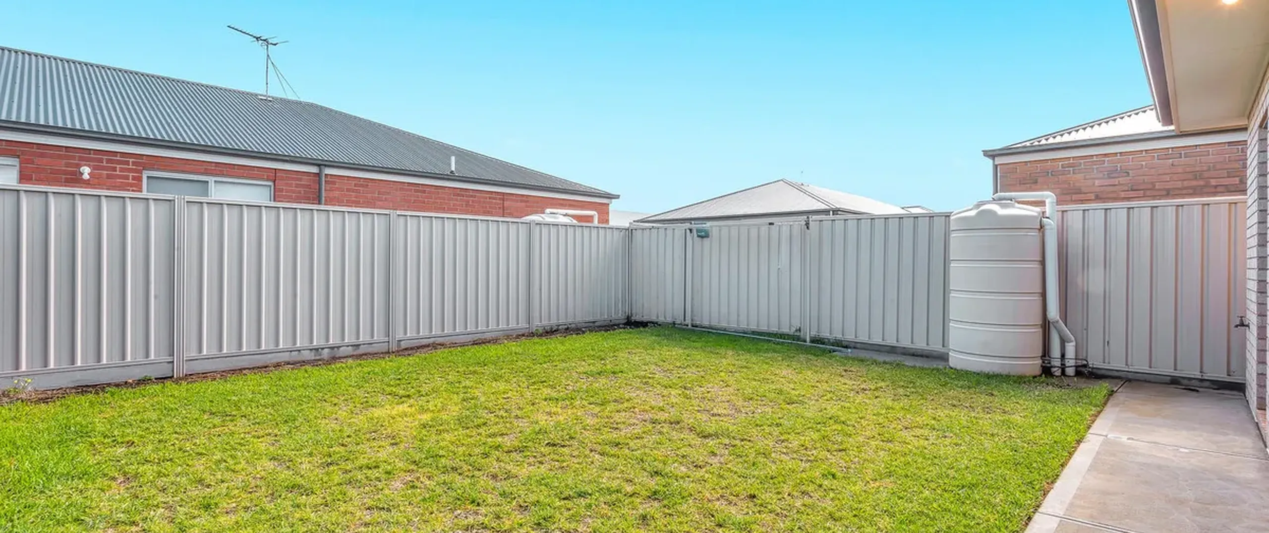- Low maintenance front and rear yard with good sized grass area for kids and pets to play