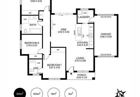 - Single garage with roller door with internal and external access through additional roller door