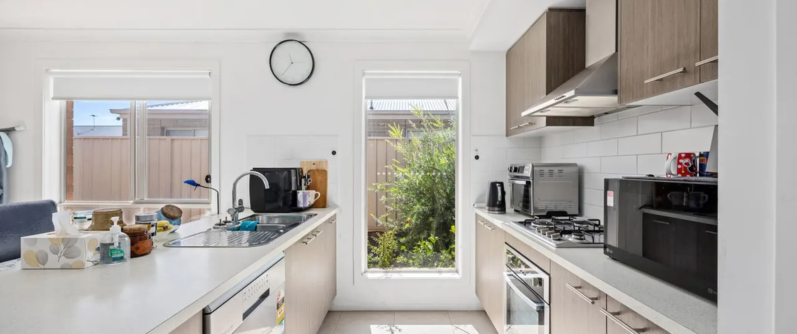 - Modern kitchen with stainless steel appliances including dishwasher, oven and gas cooktop, complete with ample cupboard and bench space