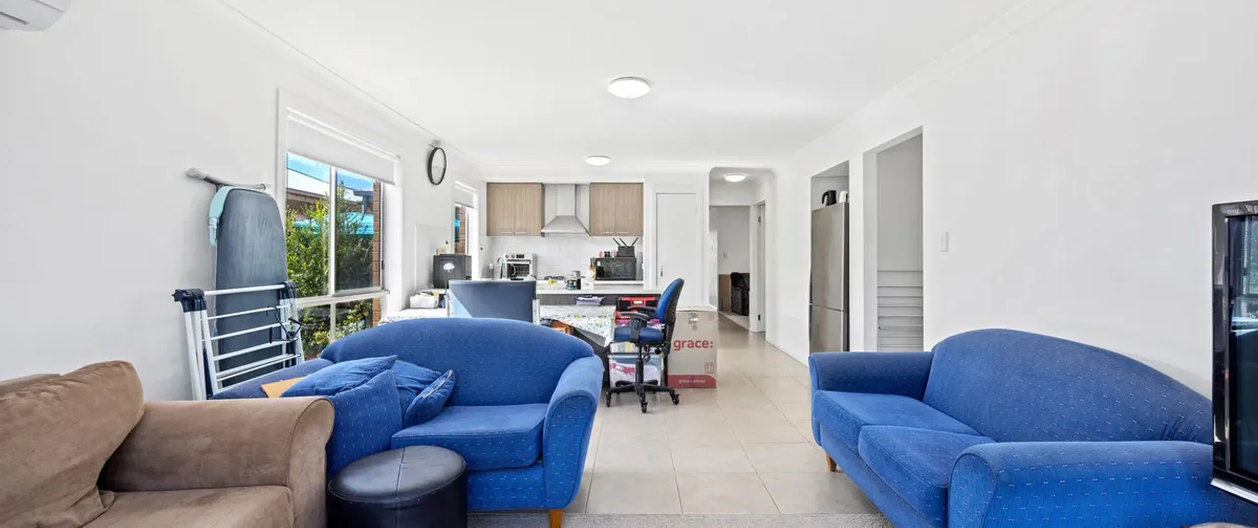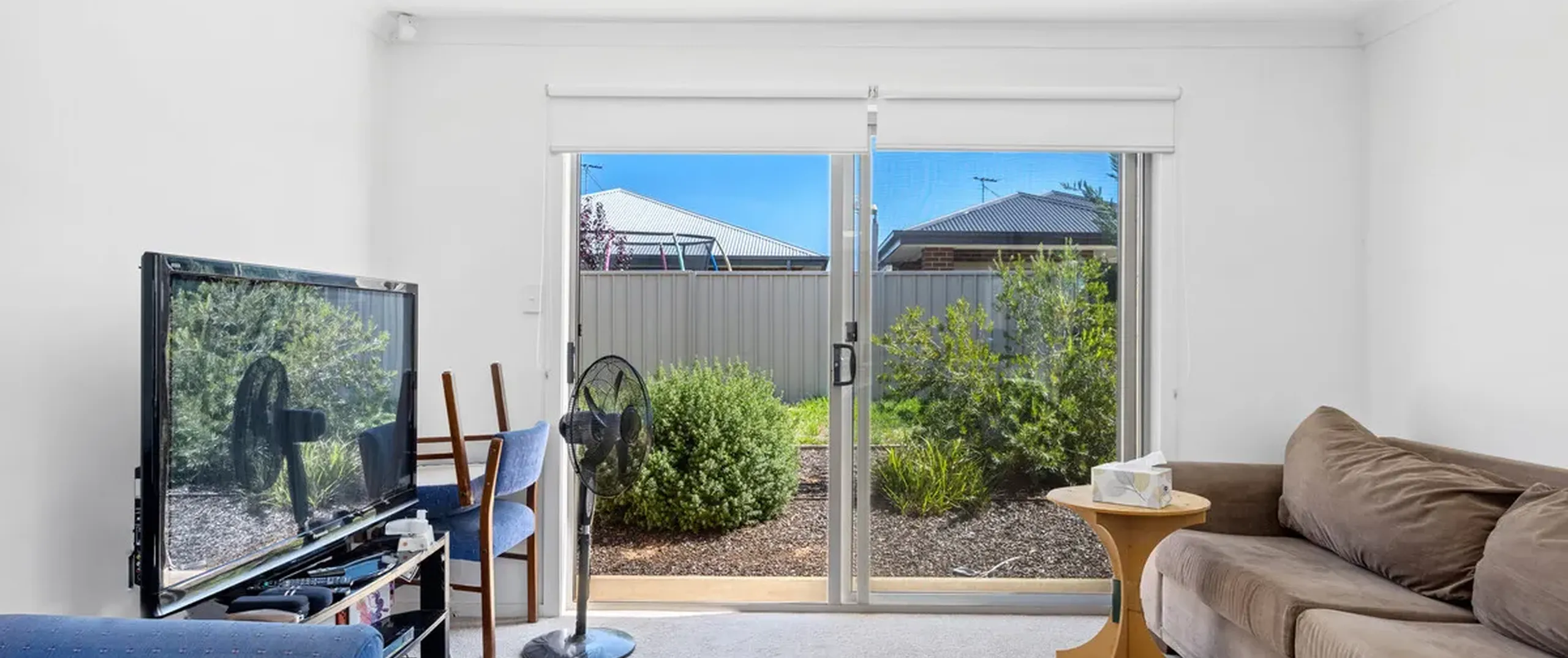 - Open plan living/dining area with split system air conditioner and sliding doors opening to the backyard