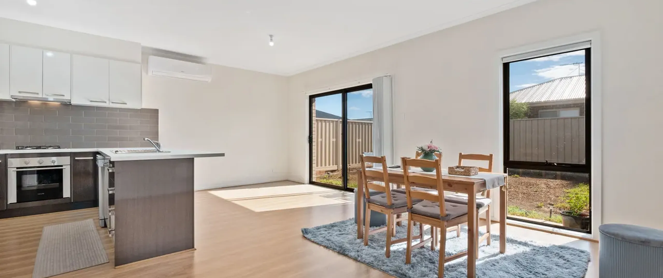 - Open plan living/dining with split system air conditioner and sliding doors opening to the backyard
