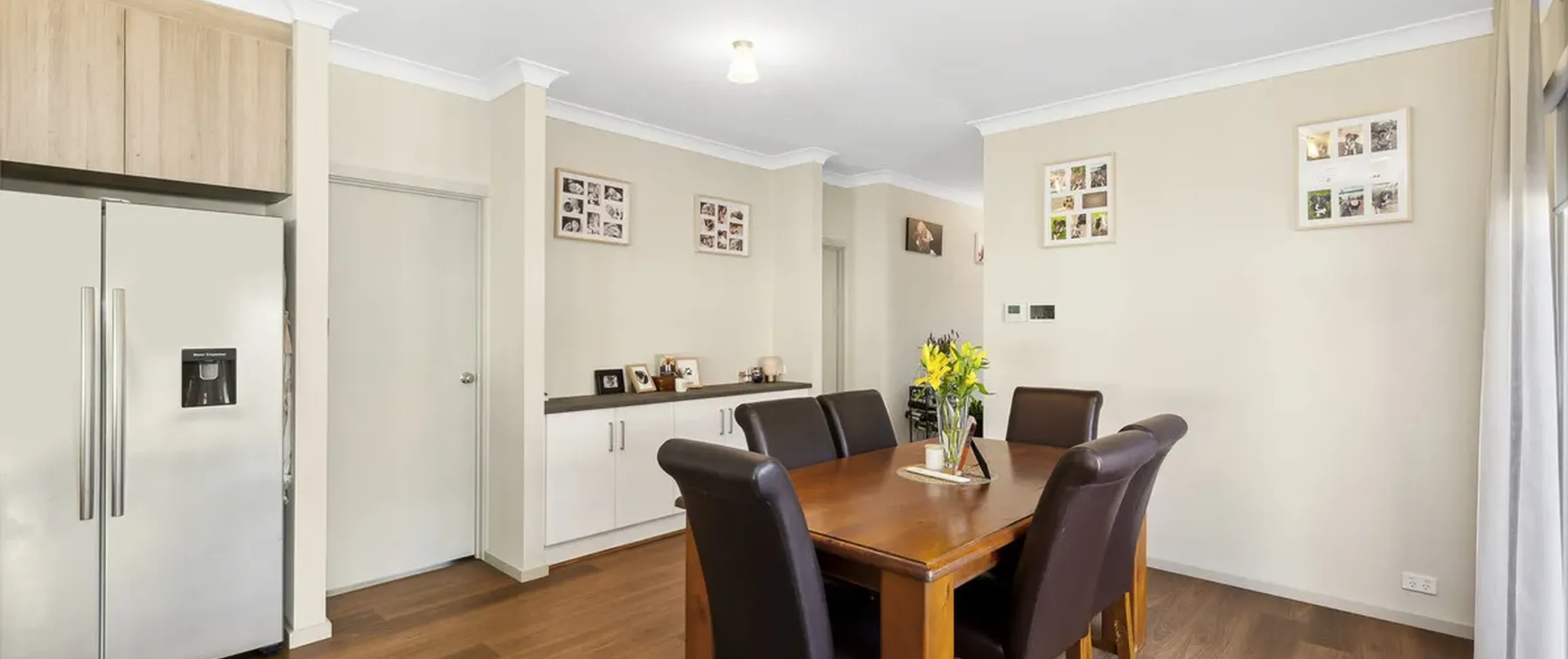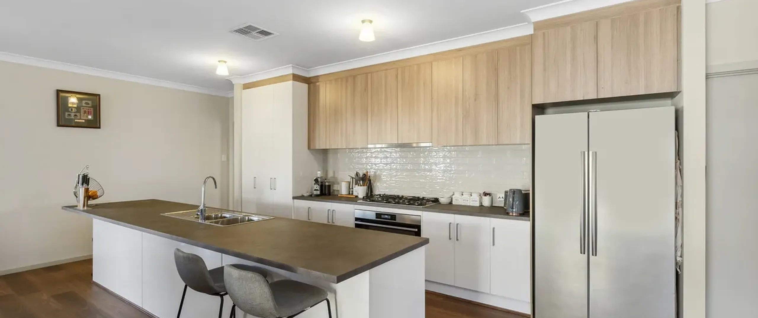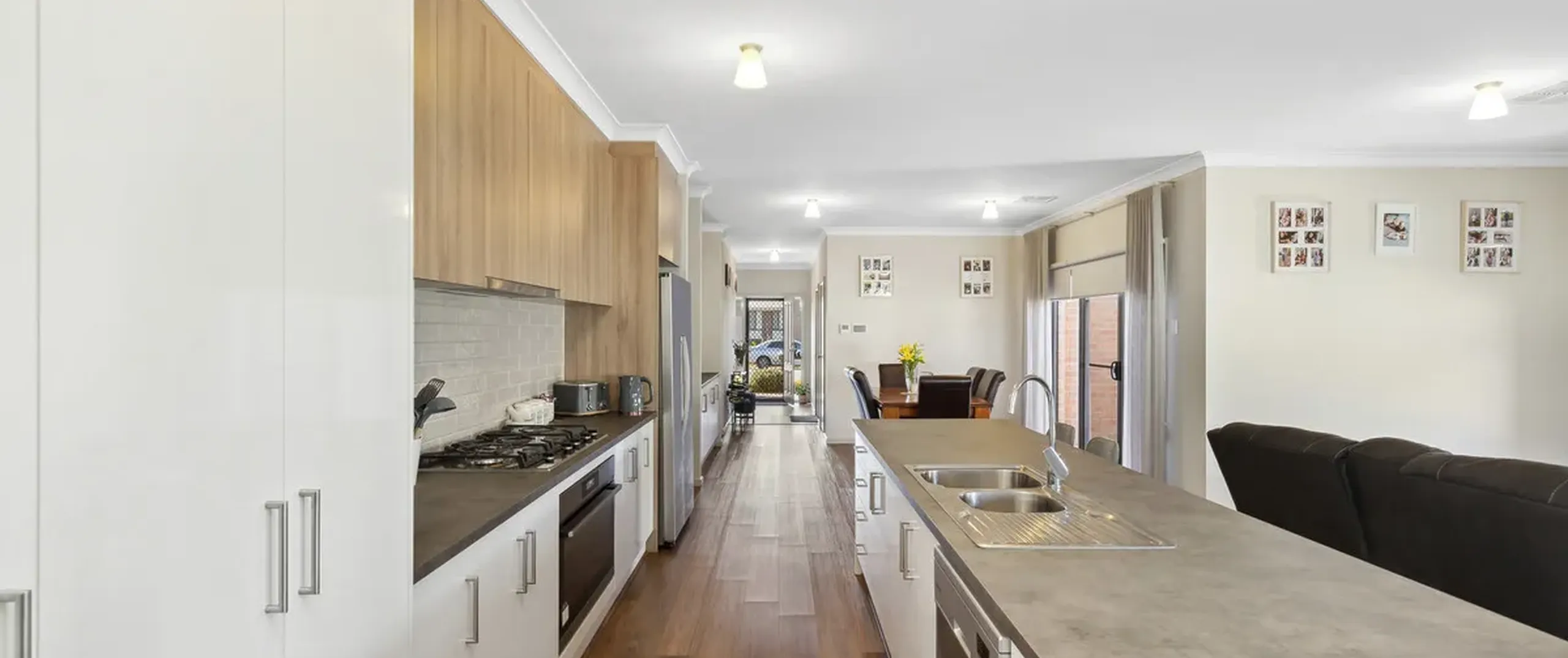 - Light filled living, kitchen and meals area with on-trend flooring underfoot