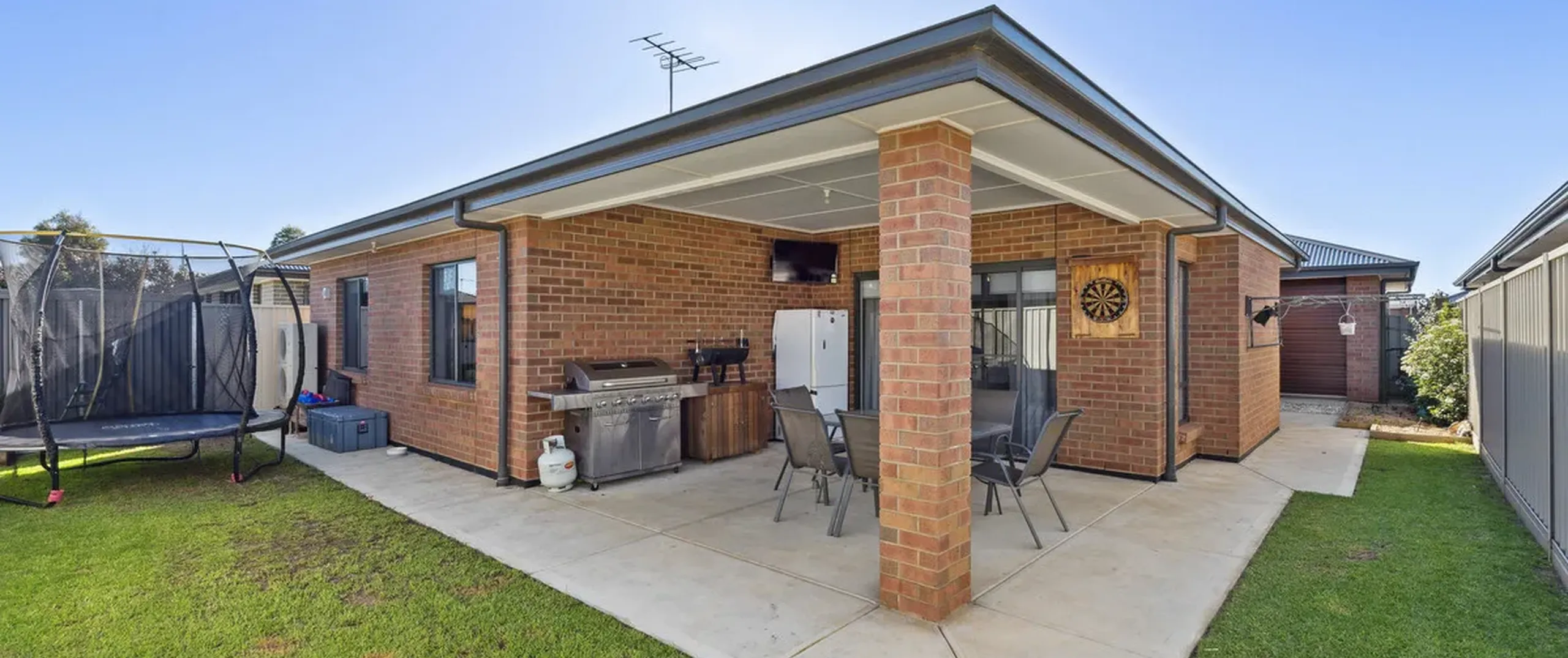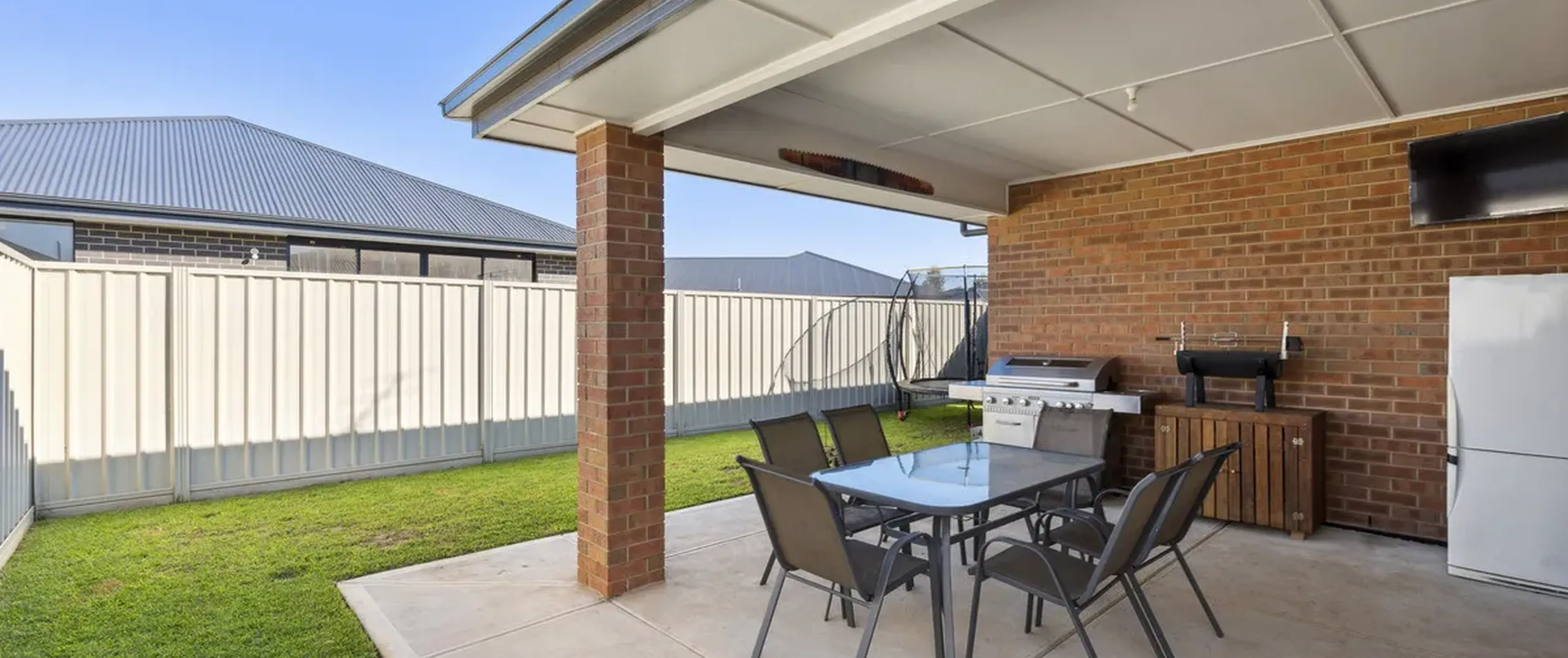 - Alfresco entertaining overlooking the low-maintenance backyard with lush grass for kids and pets to run free
