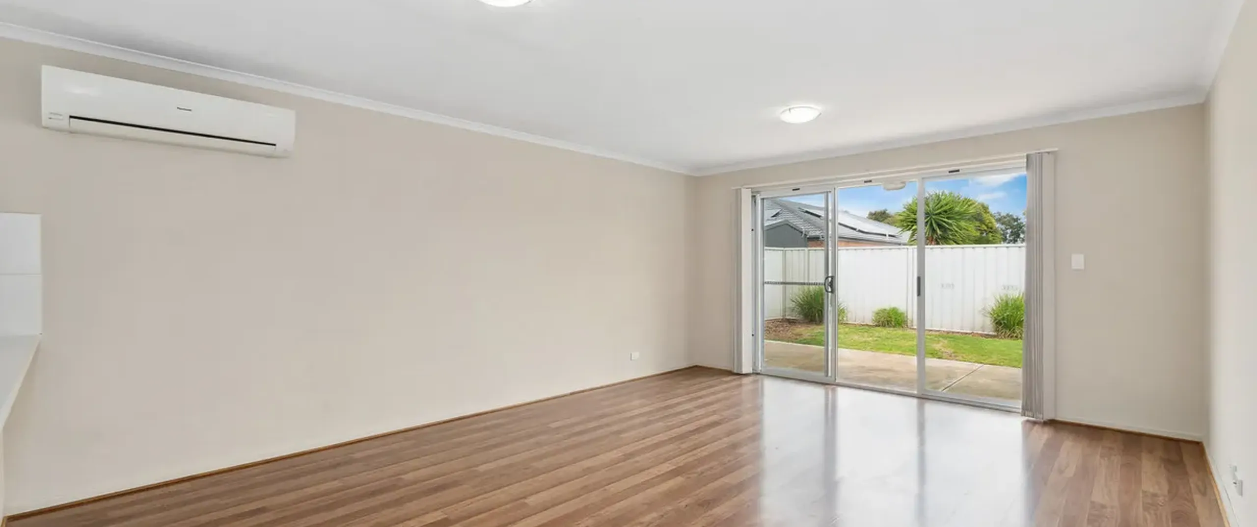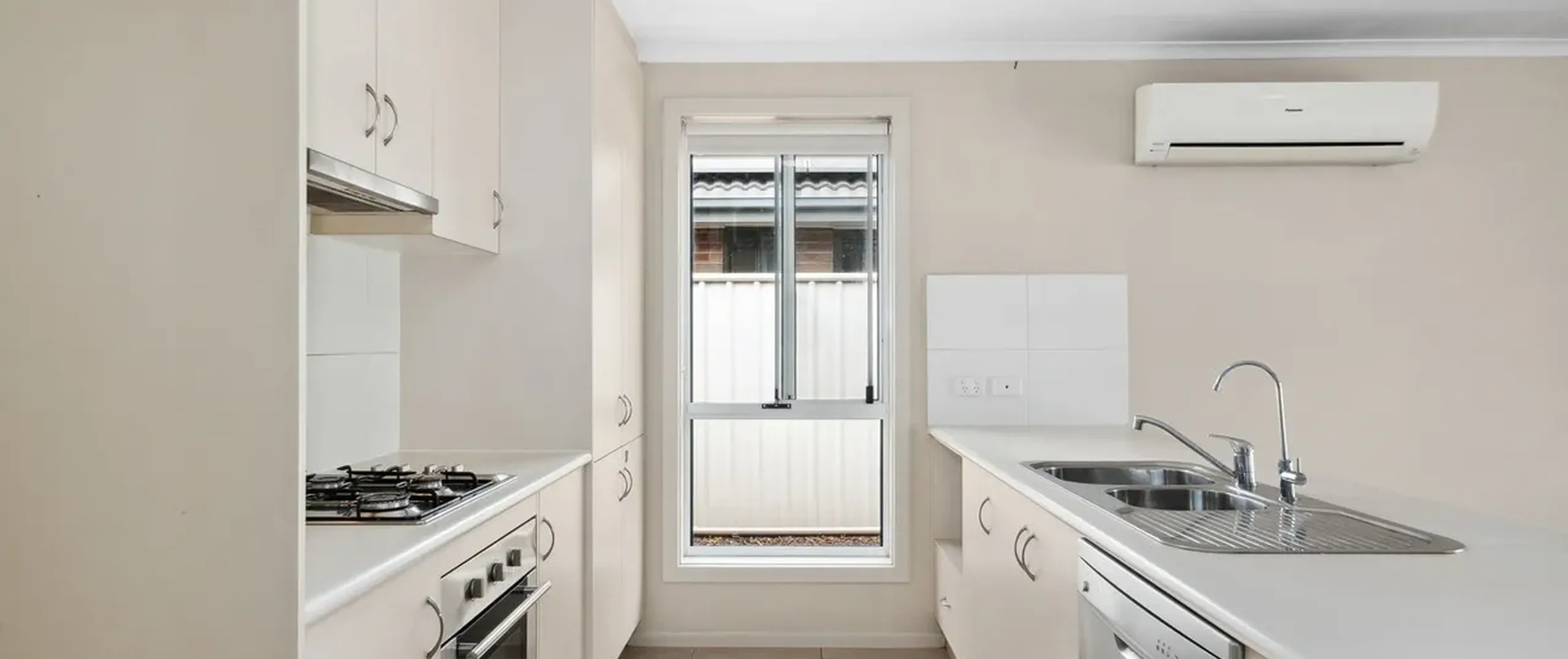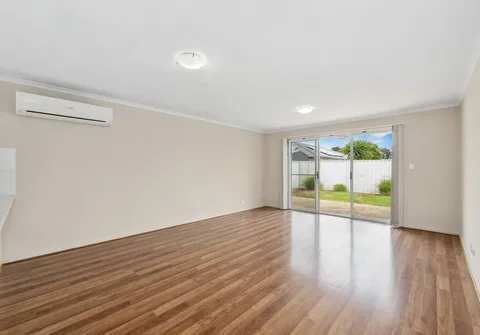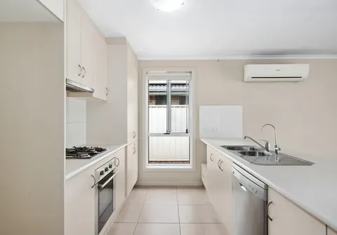 - Light-filled open plan living, dining and kitchen area with ceiling fan and split system air-conditioner