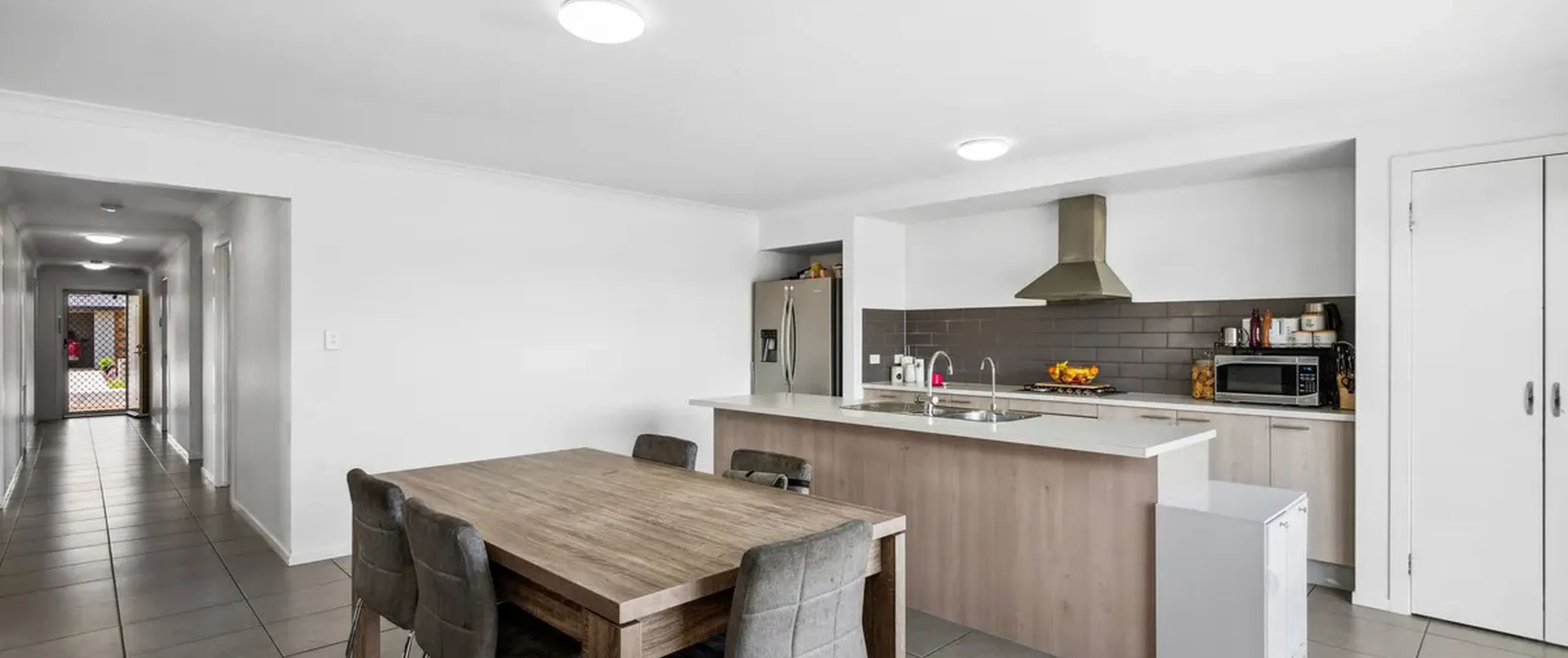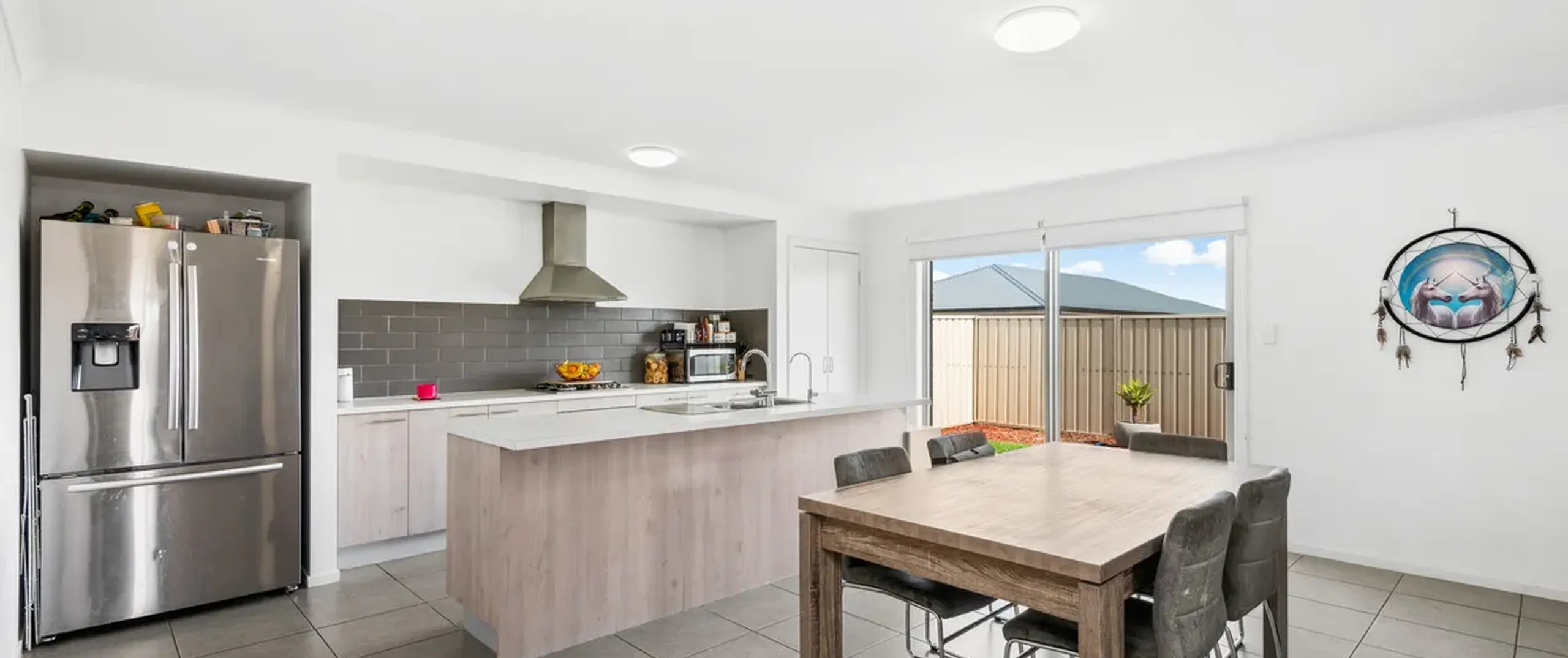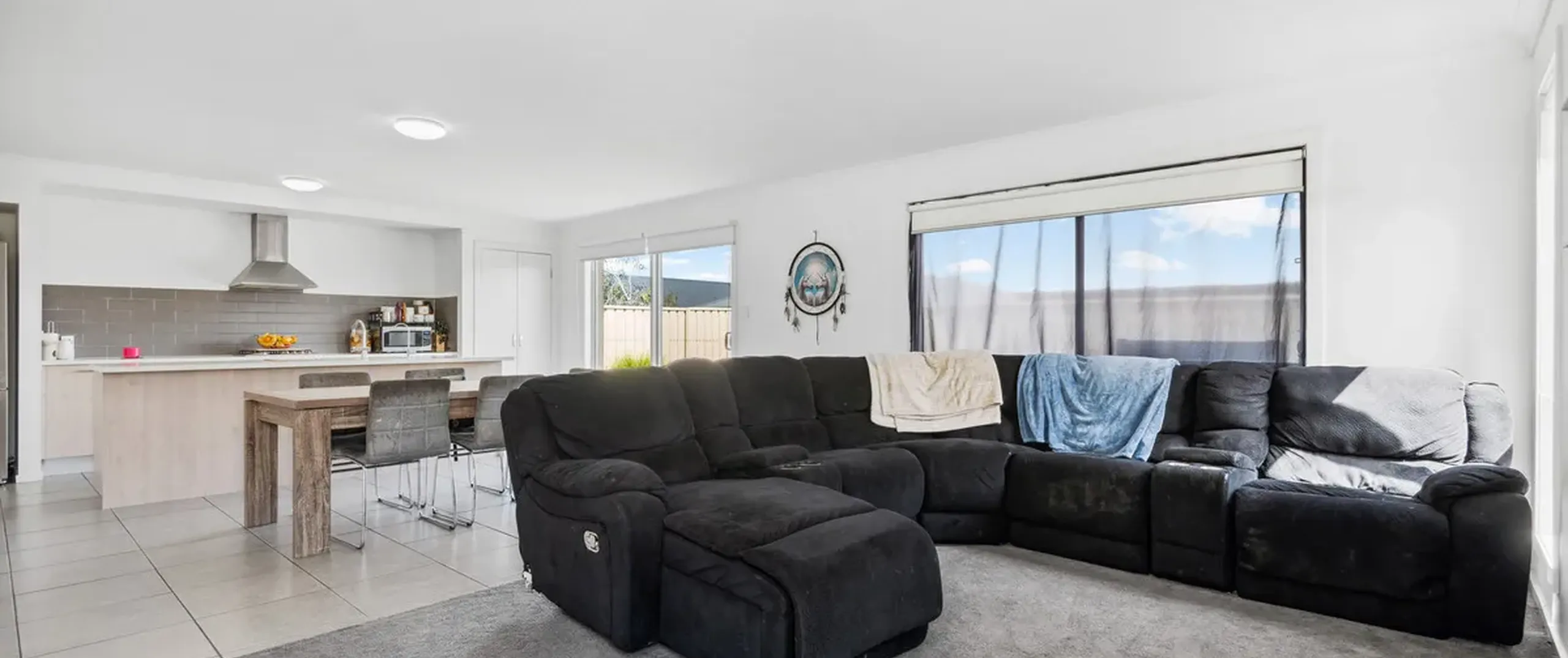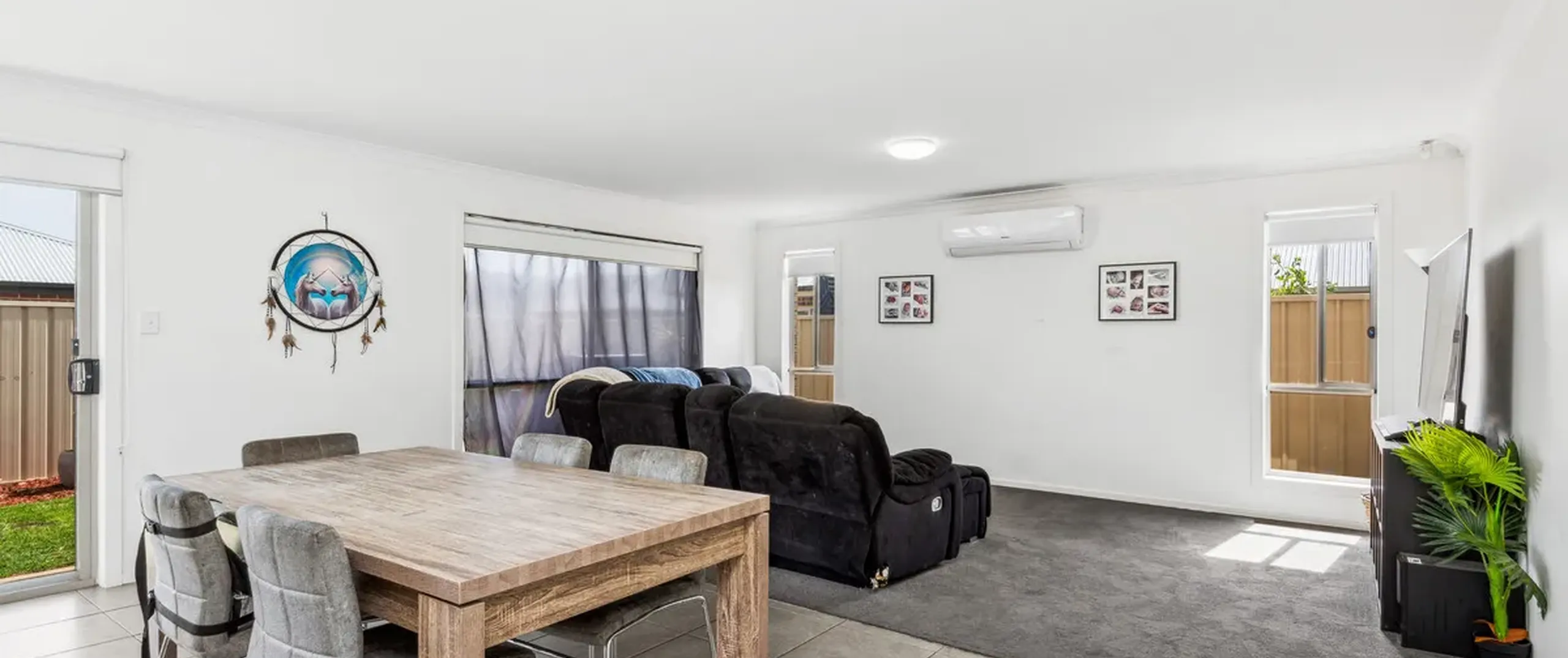 - Light-filled open plan living, dining and kitchen area with split system air-conditioner