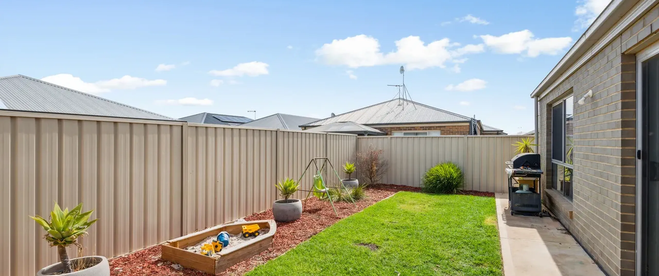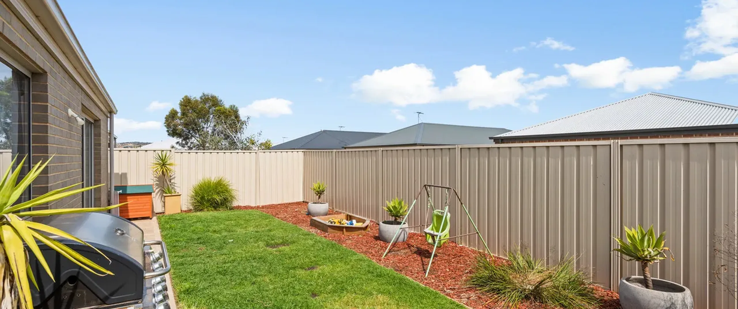 - Secure and well-maintained back yard with grassed area for kids and pets to enjoy