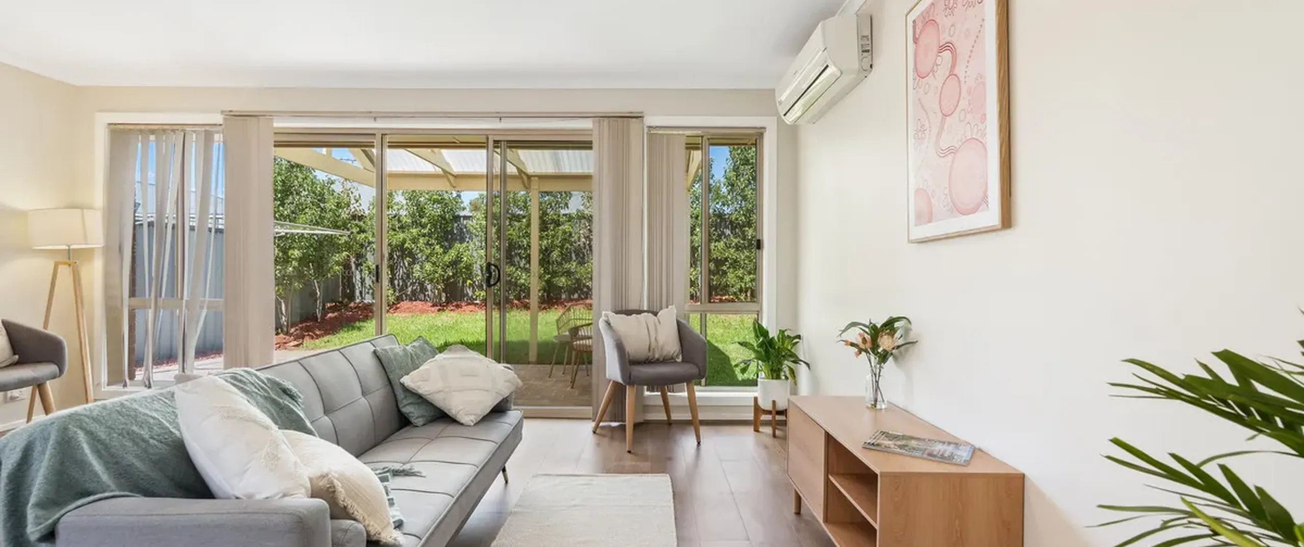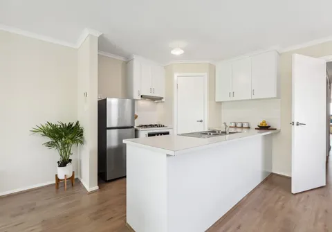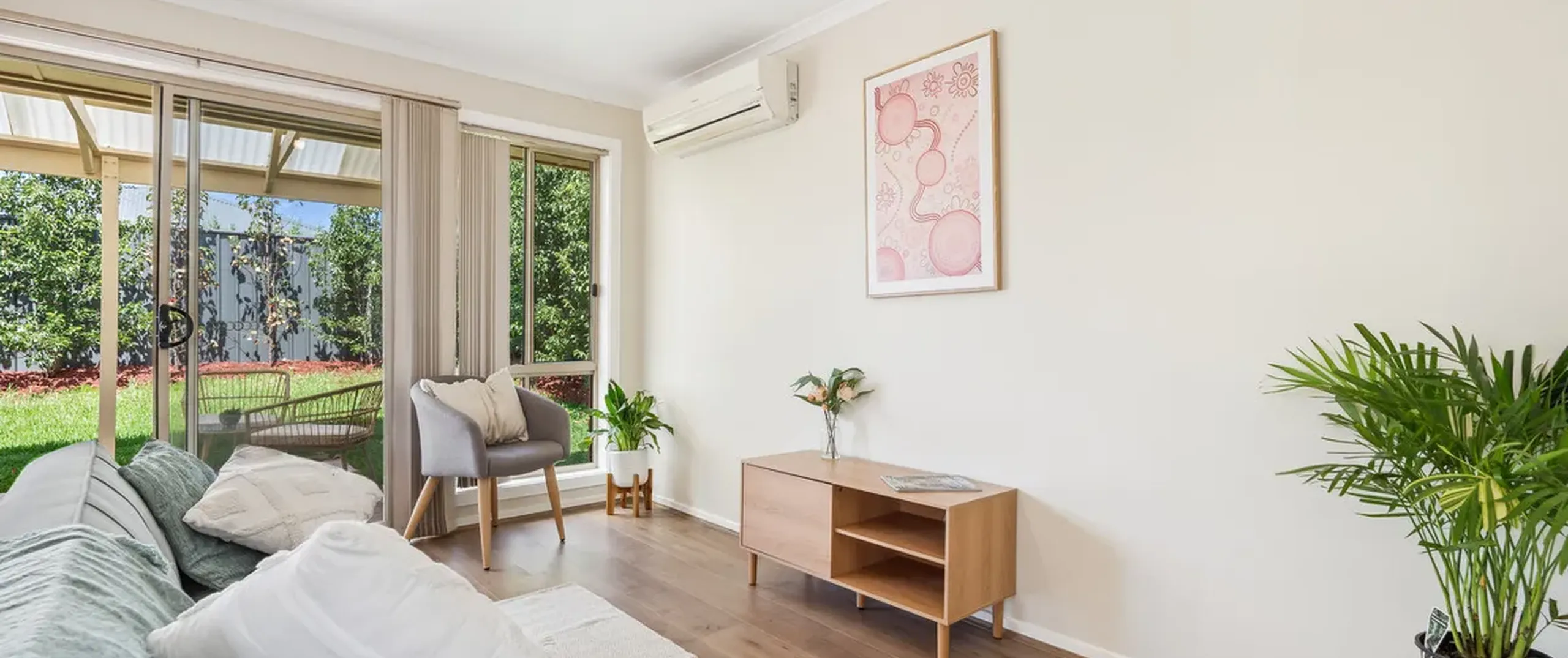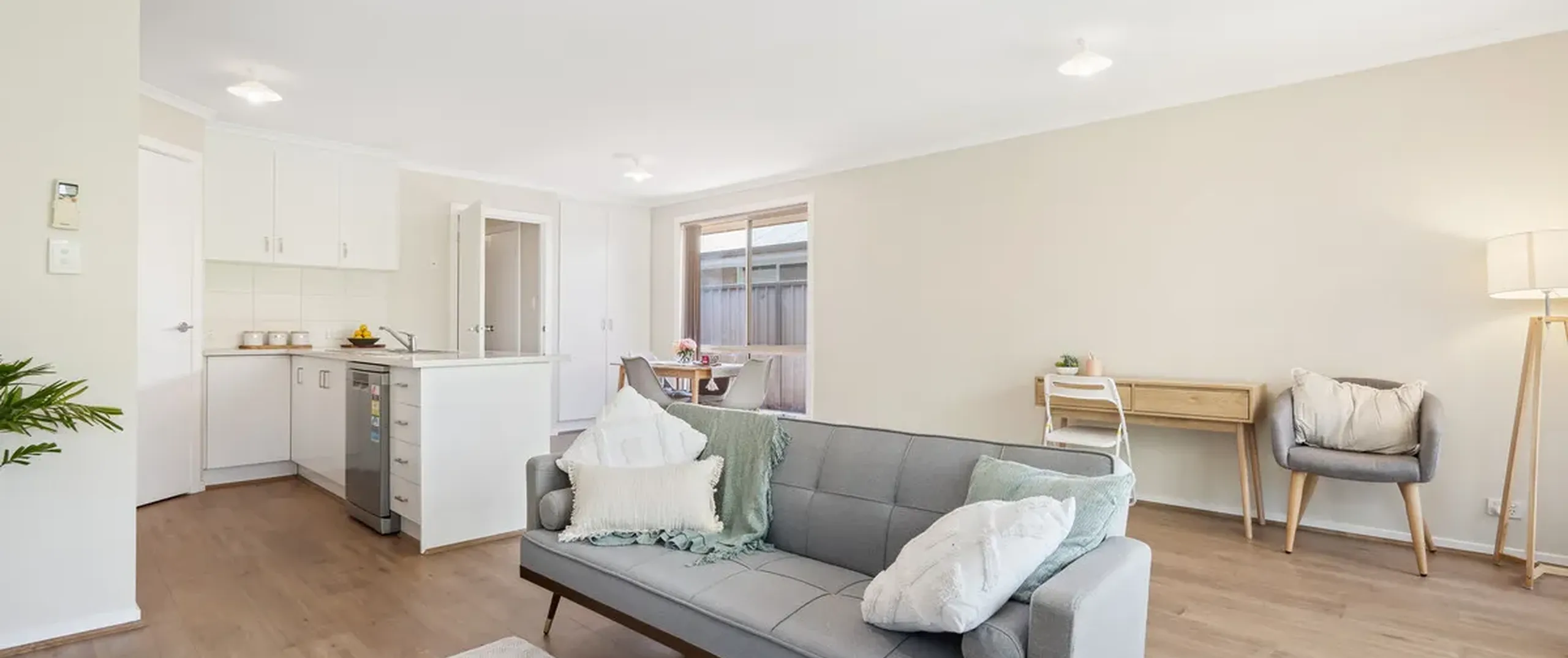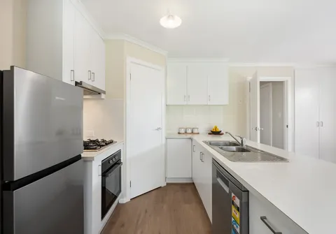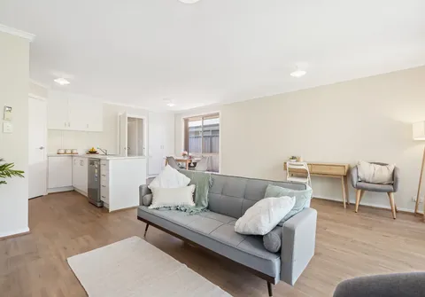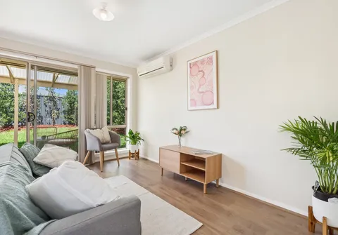 - Light filled open plan living and kitchen area with split-system air-conditioning, easy-care flooring and sliding door to the