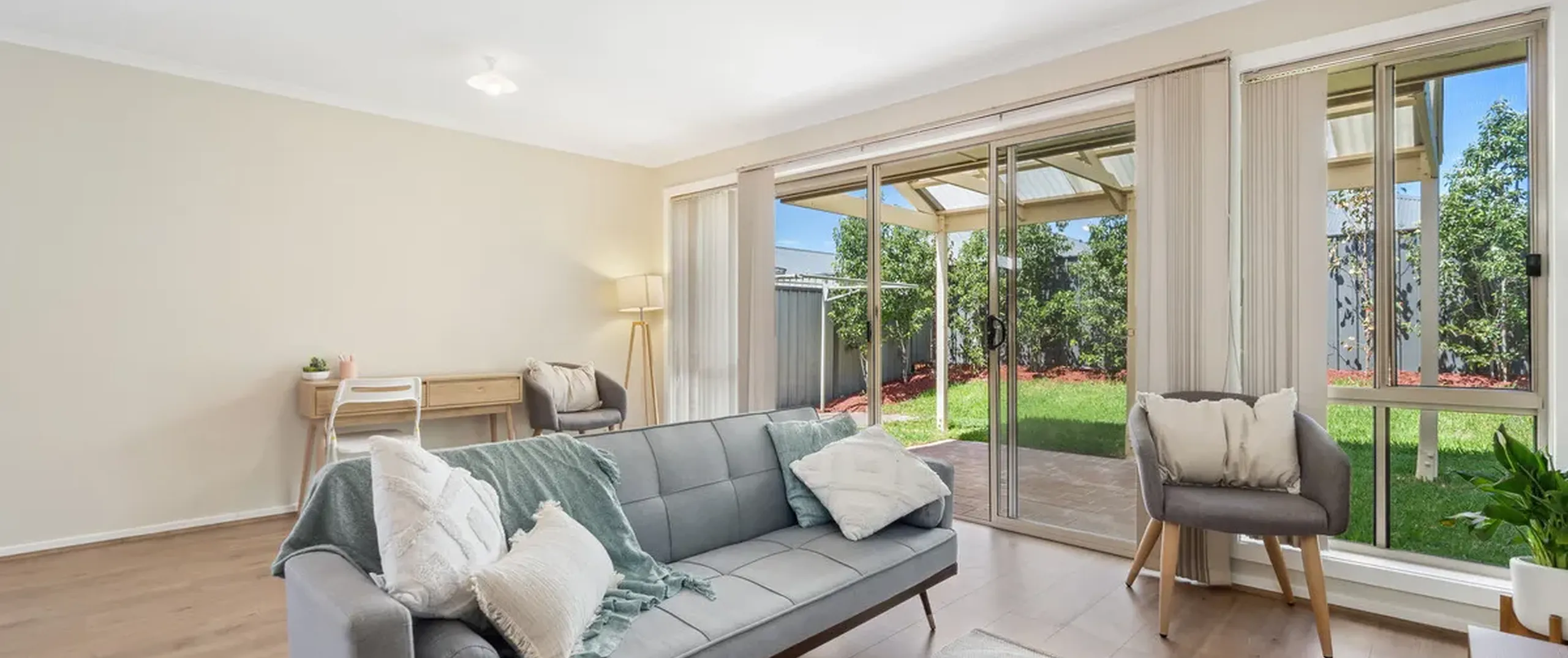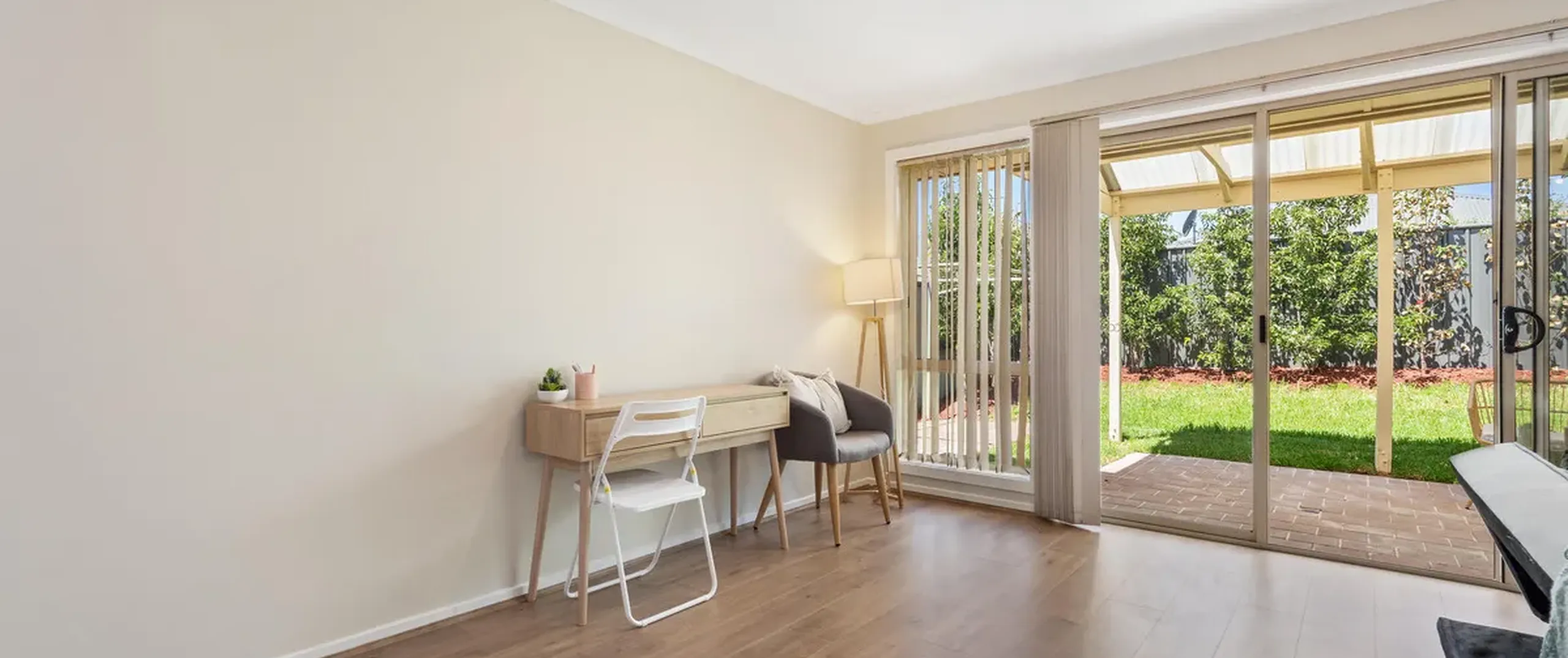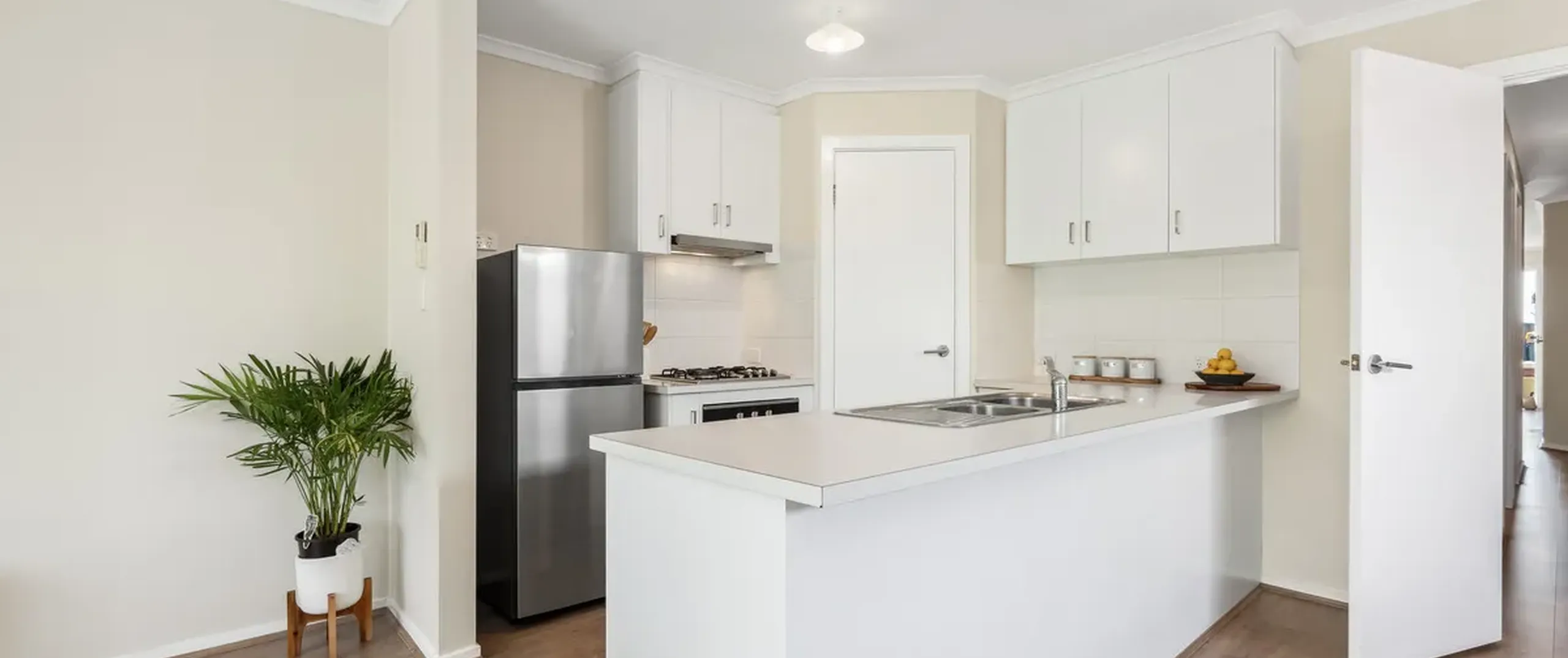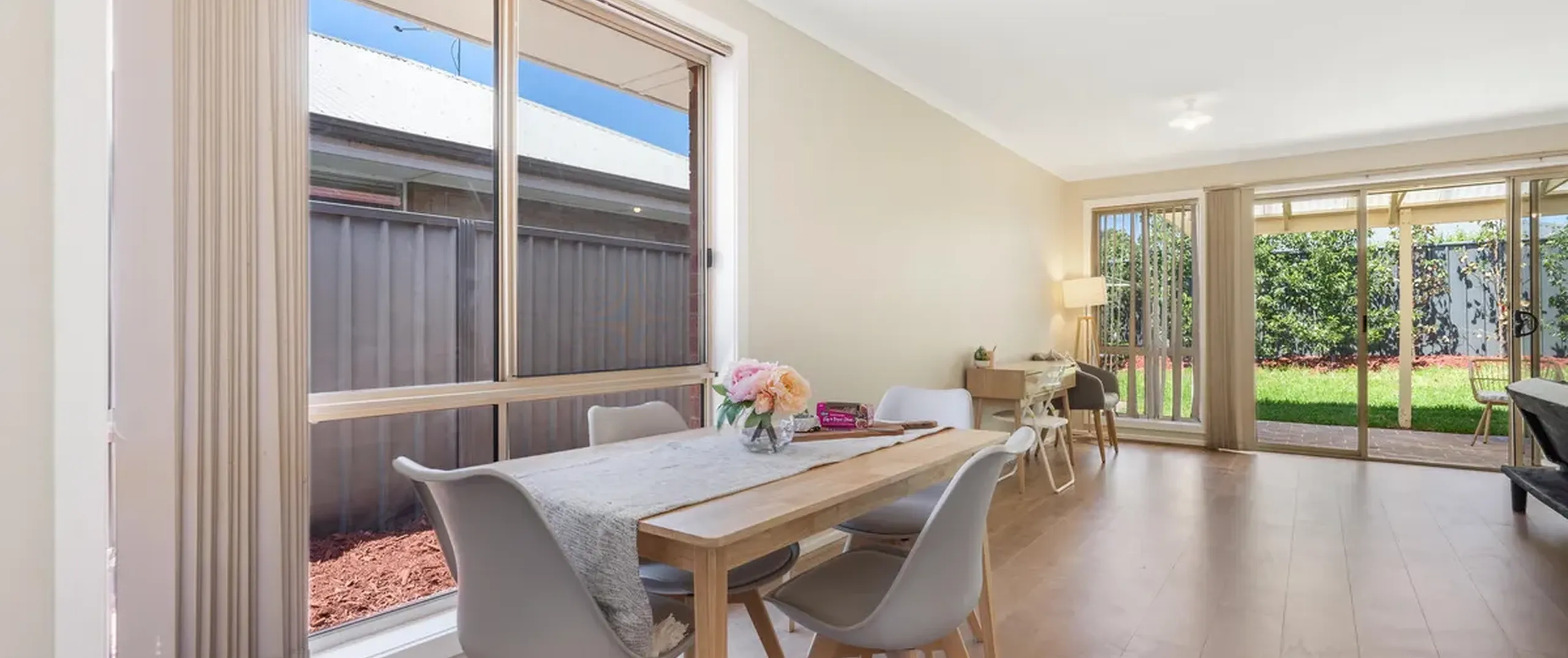 - Light filled open plan living and kitchen area with split-system air-conditioning, easy-care flooring and sliding door to the