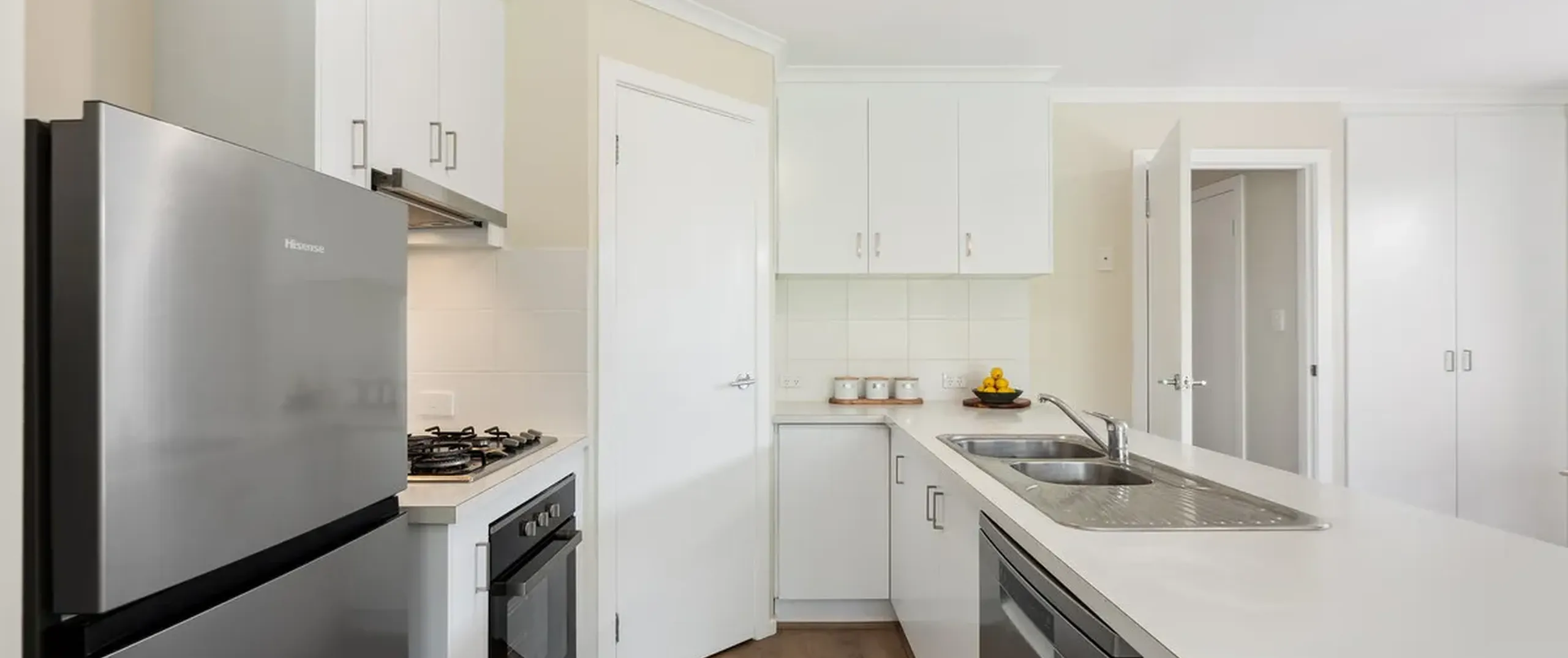 - Modern kitchen with gas cooktop, dishwasher and ample cupboard and bench space