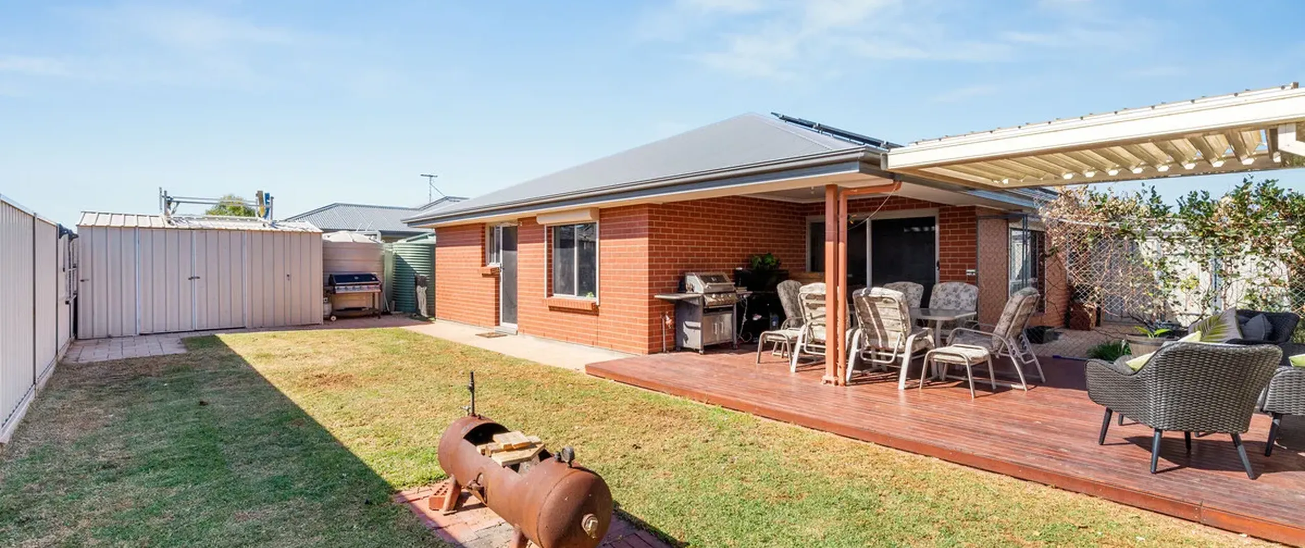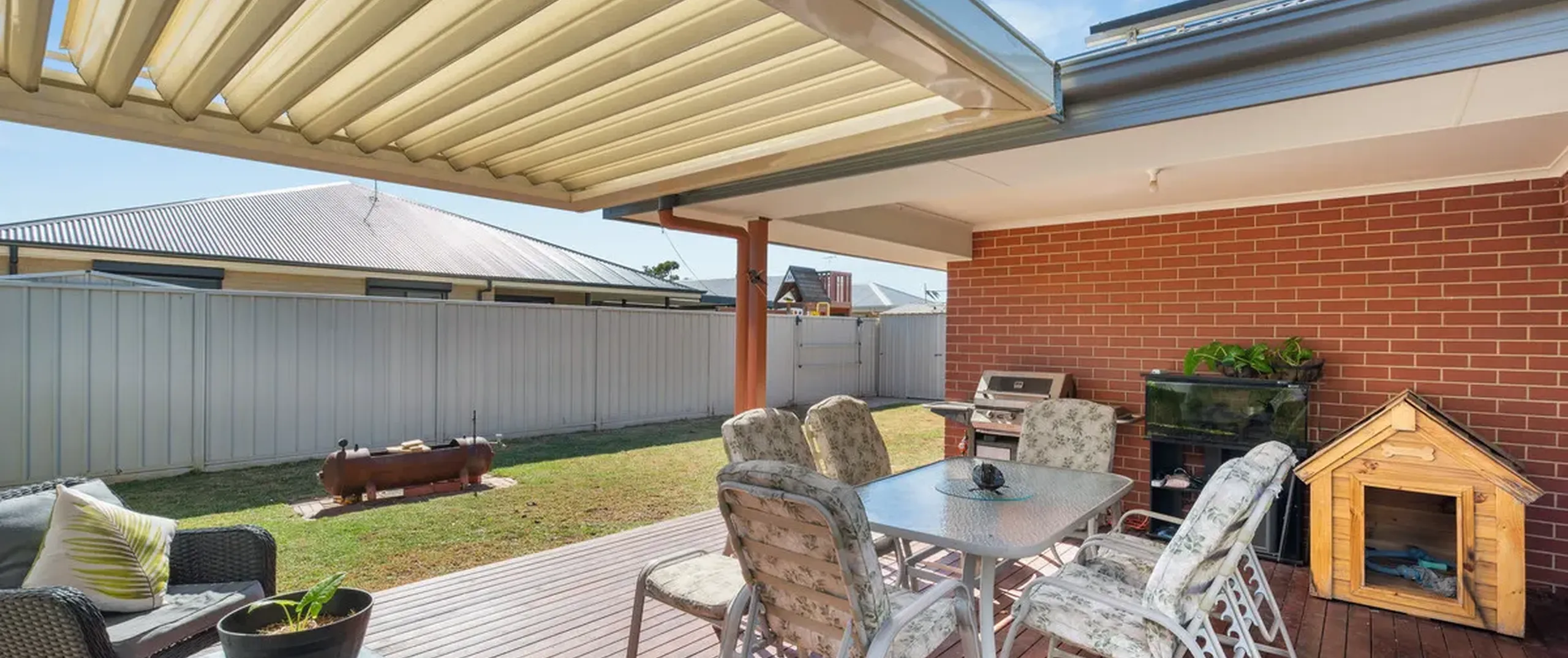 - Outdoor entertaining deck enhanced by a Vergola, offering the perfect spot for enjoying sunny days with the option to adjust for shade