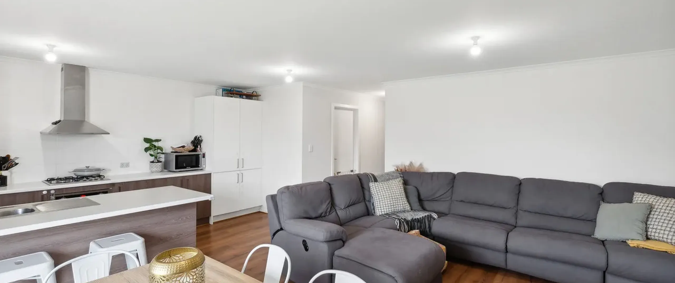 - Light filled open plan living, meals and kitchen area with easy-care flooring and sliding door to the rear yard