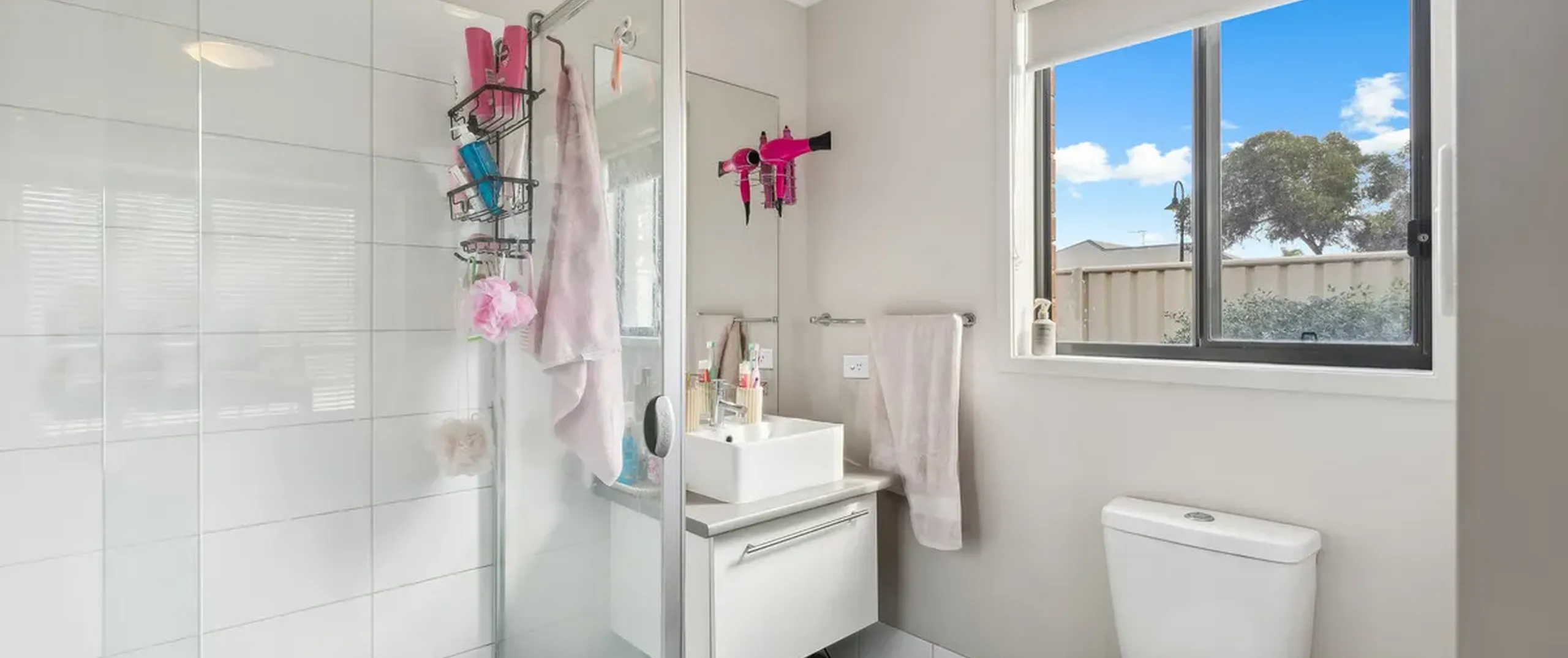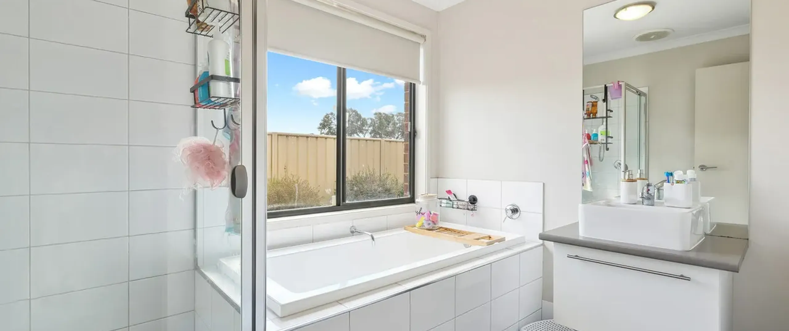 - Light and bright main bathroom with separate bath and shower