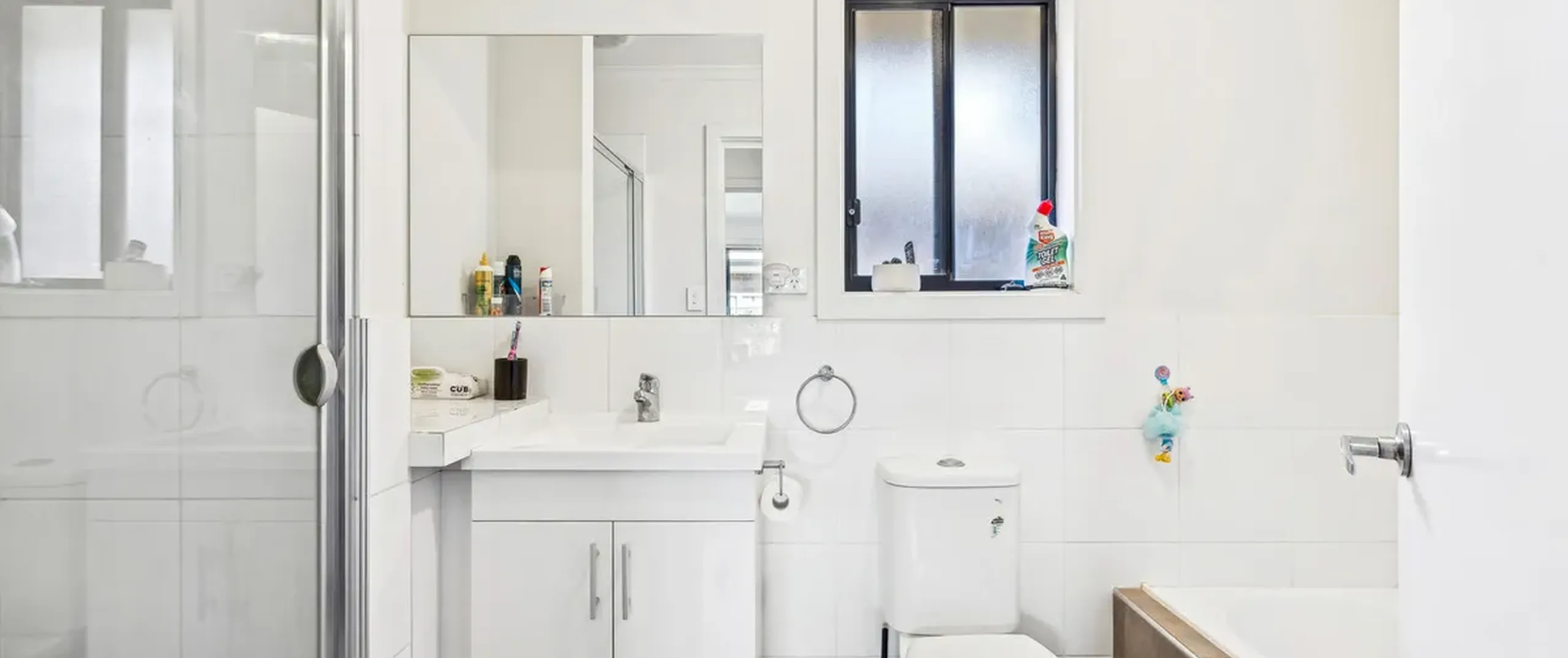 - Main bathroom with shower and bath