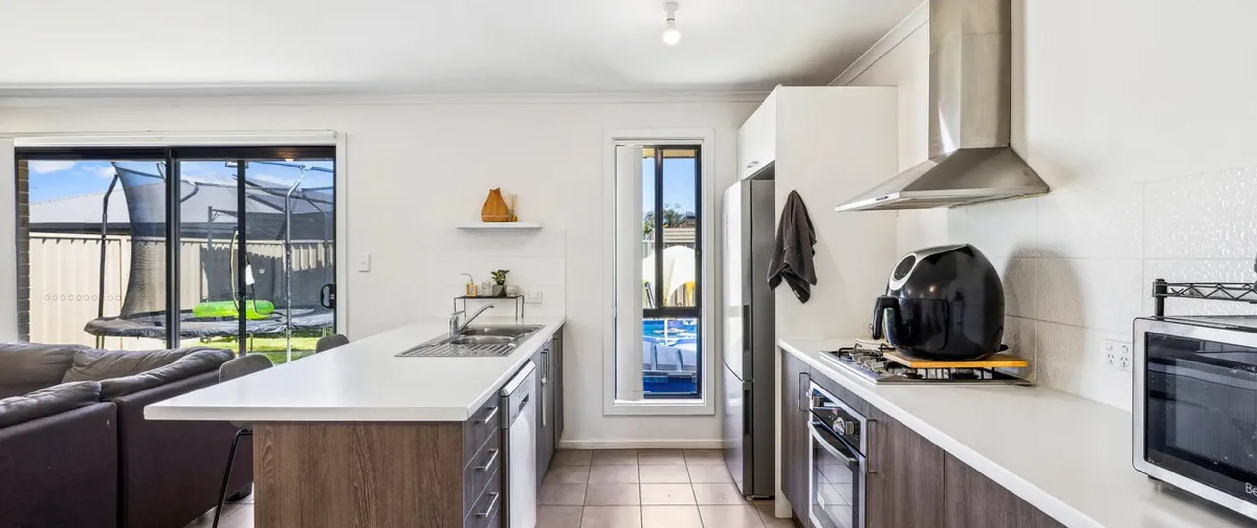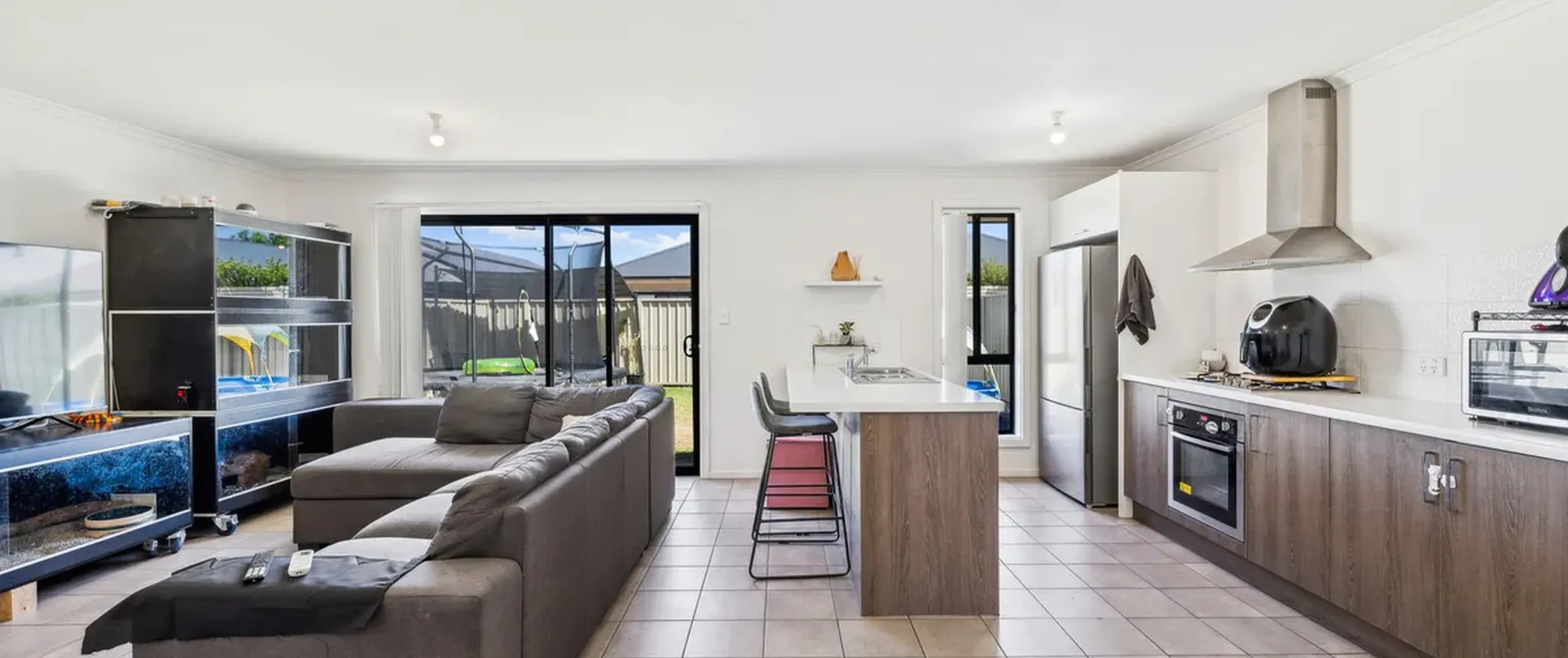 - Light filled open plan living, meals and kitchen area with easy-care flooring and sliding door to the rear yard