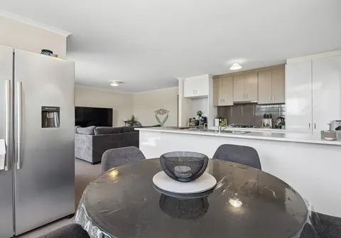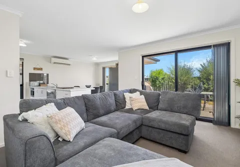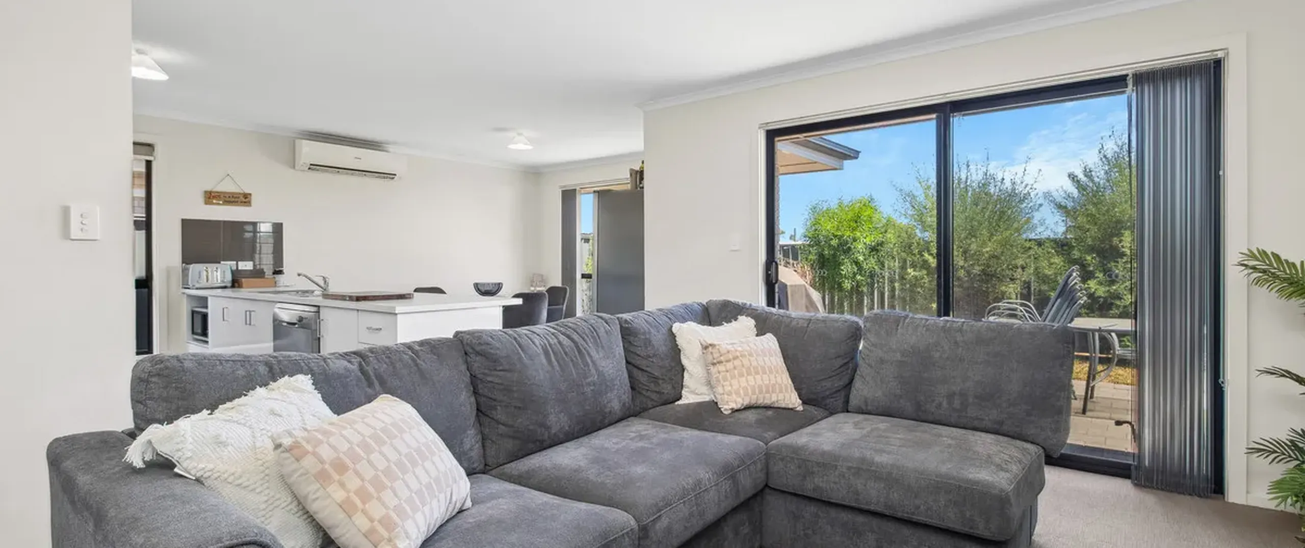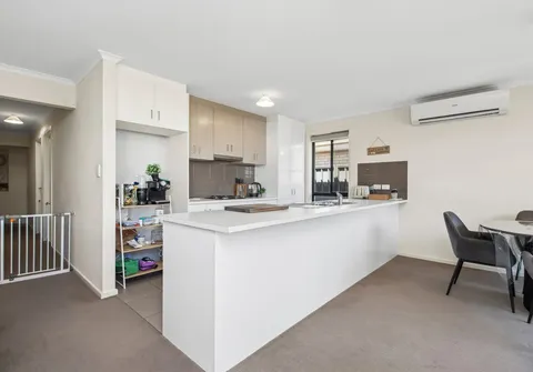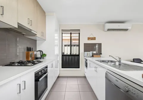 Step inside to discover a functional, single-level layout featuring an open-plan kitchen, dining, and living area at the heart of the home. A split-system air conditioner ensures year-round comfort, while a sliding glass door provides seamless access to the low-maintenance backyard, offering potential for your personal touch. The home also includes a single-car garage for secure parking.