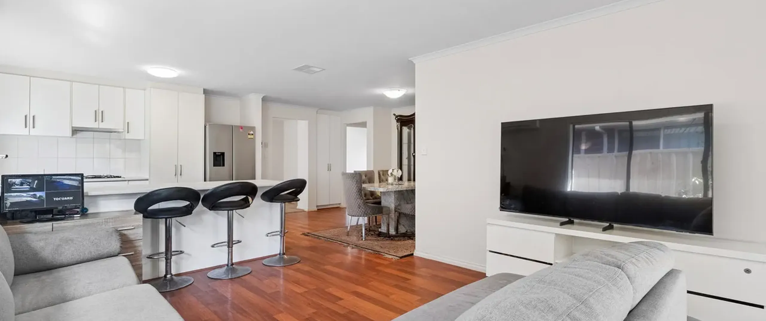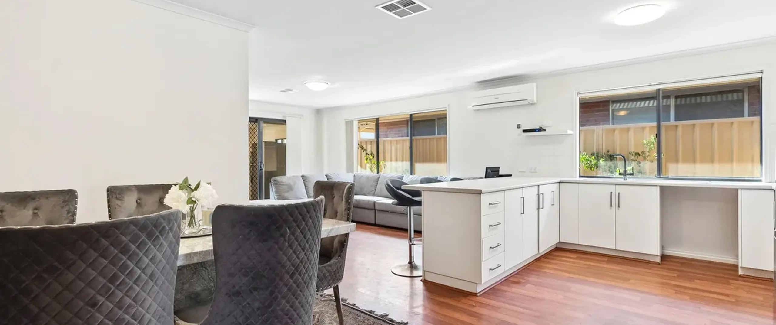 - Spacious open-plan kitchen, family, and dining area with timber-look flooring and split-system air conditioning