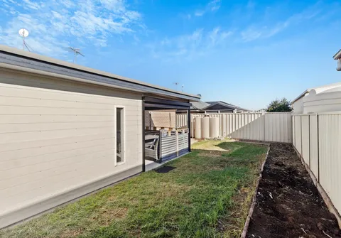 The tiled and covered pergola is perfect for outdoor entertaining, while the easy-care garden beds in the rear yard frame the lawn and this outlook offers a peaceful space to relax. With secure internal access, the double garage offers everyday ease, while the rainwater tank adds a thoughtful, sustainable touch to your lifestyle.