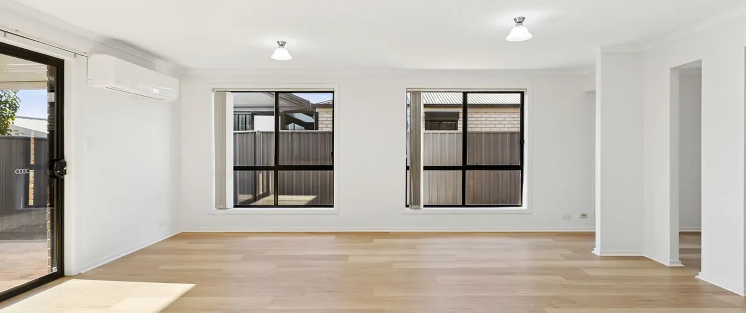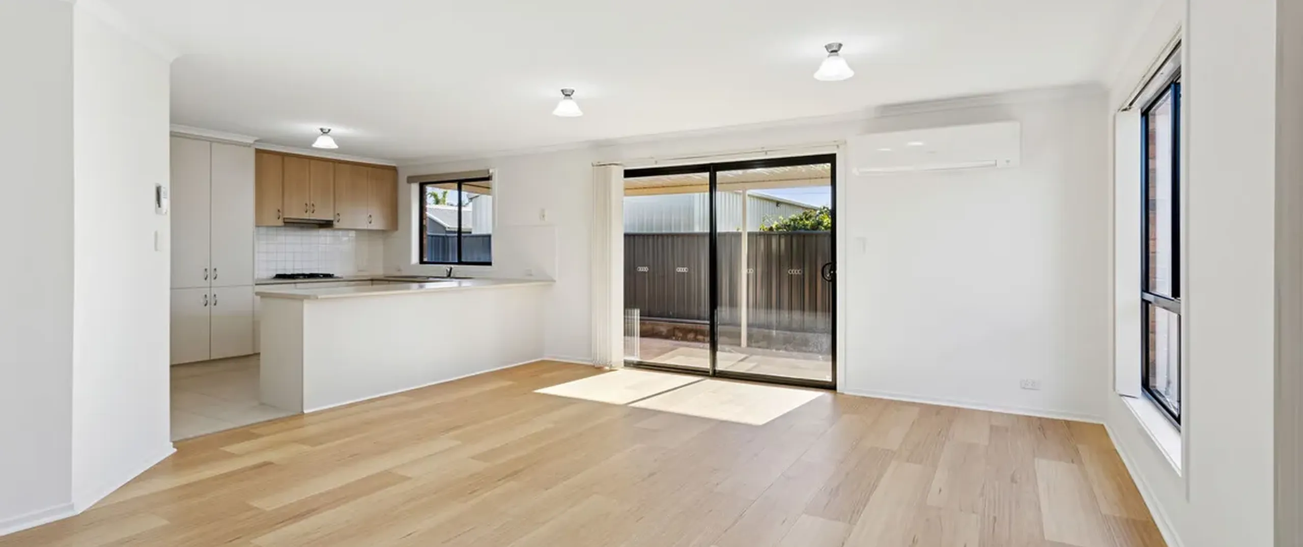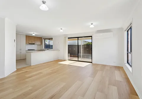 - Light filled open plan living, meals and kitchen area with split system air conditioner, easy-care flooring and sliding door to the rear yard