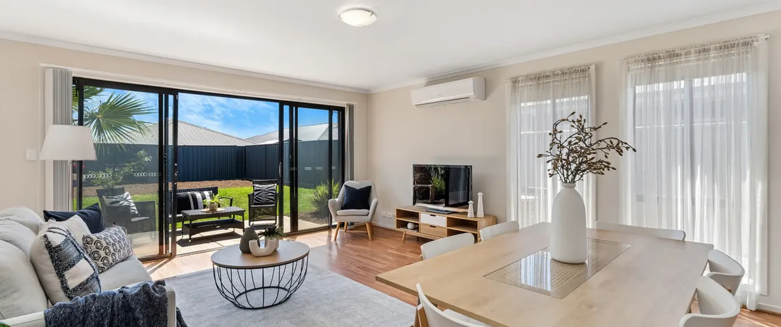 - Fantastic open plan meals/living area with split-system air conditioner