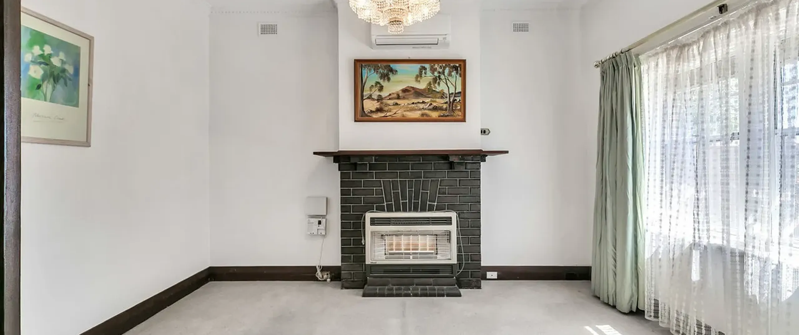 - Light filled formal lounge with gas heater, ceiling dome, gold chandelier and split system air conditioner